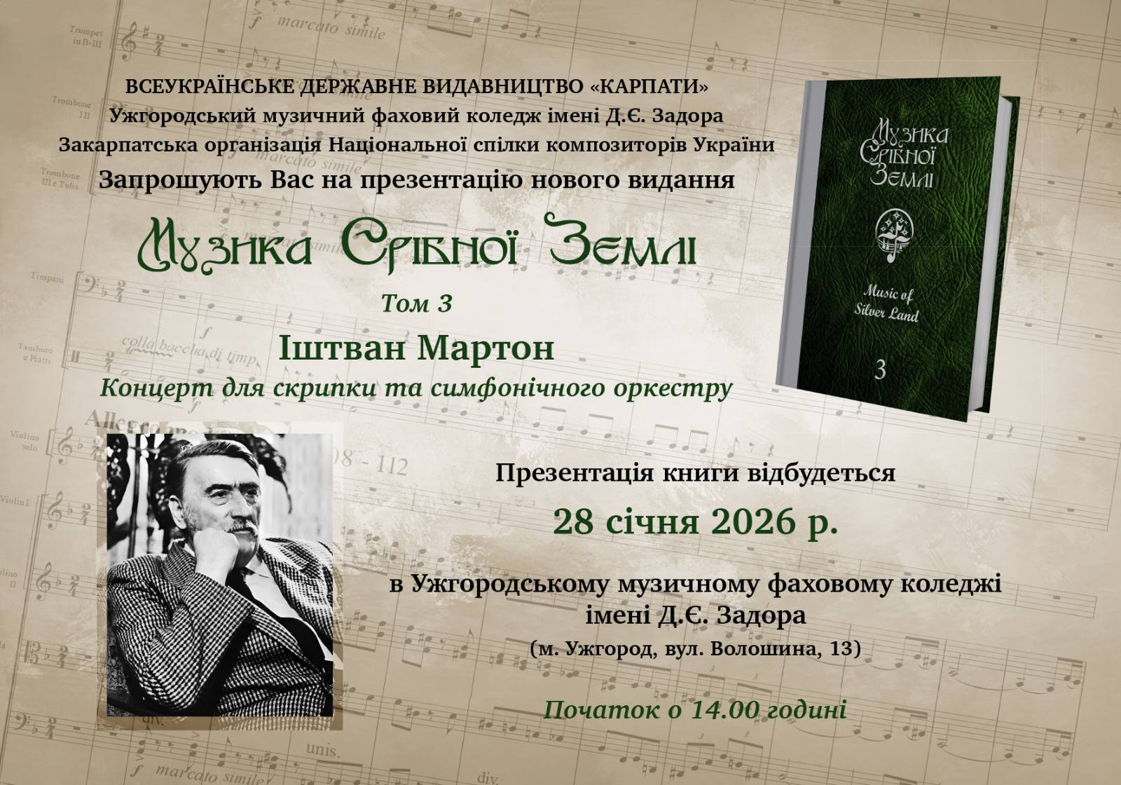 Презентація третього тому нотної антології «Музика Срібної Землі» в УжМФК ім.Д.Є.Задора