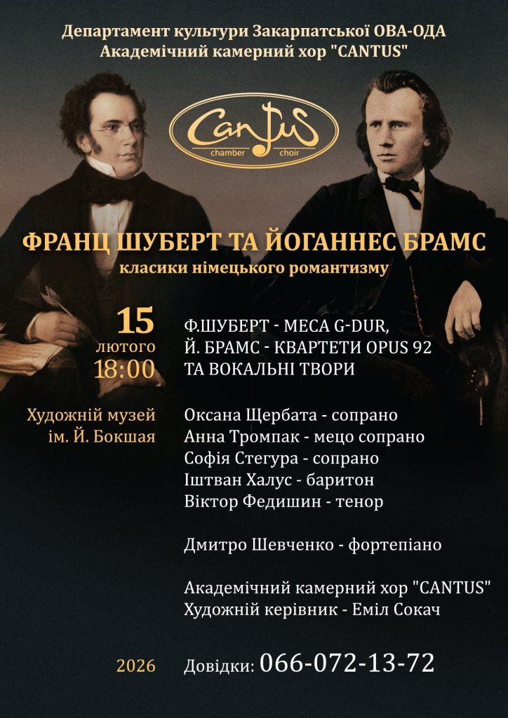 У неділю, 15 лютого, в залі Закарпатського обласного художнього музею ім.Й.Бокшая звучатимуть твори класиків німецького романтизму.