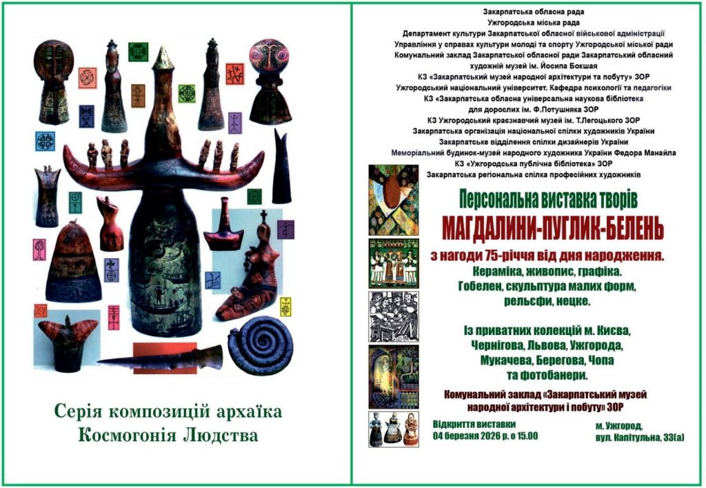 У середу, 4 березня, простір Закарпатського музею народної архітектури та побуту прикрасять роботи знаної майстрині, заслуженої художниці України Магдалини Пуглик-Белень.