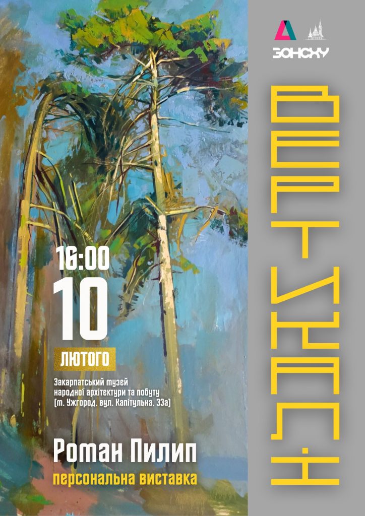 У залі Закарпатського музею народної архітектури та побуту свою творчість представить Роман Пилип – живописець, член Національної спілки художників України, знаний науковець і педагог – завідувач кафедри декоративно-прикладного мистецтва Закарпатської академії мистецтв, кандидат мистецтвознавства.