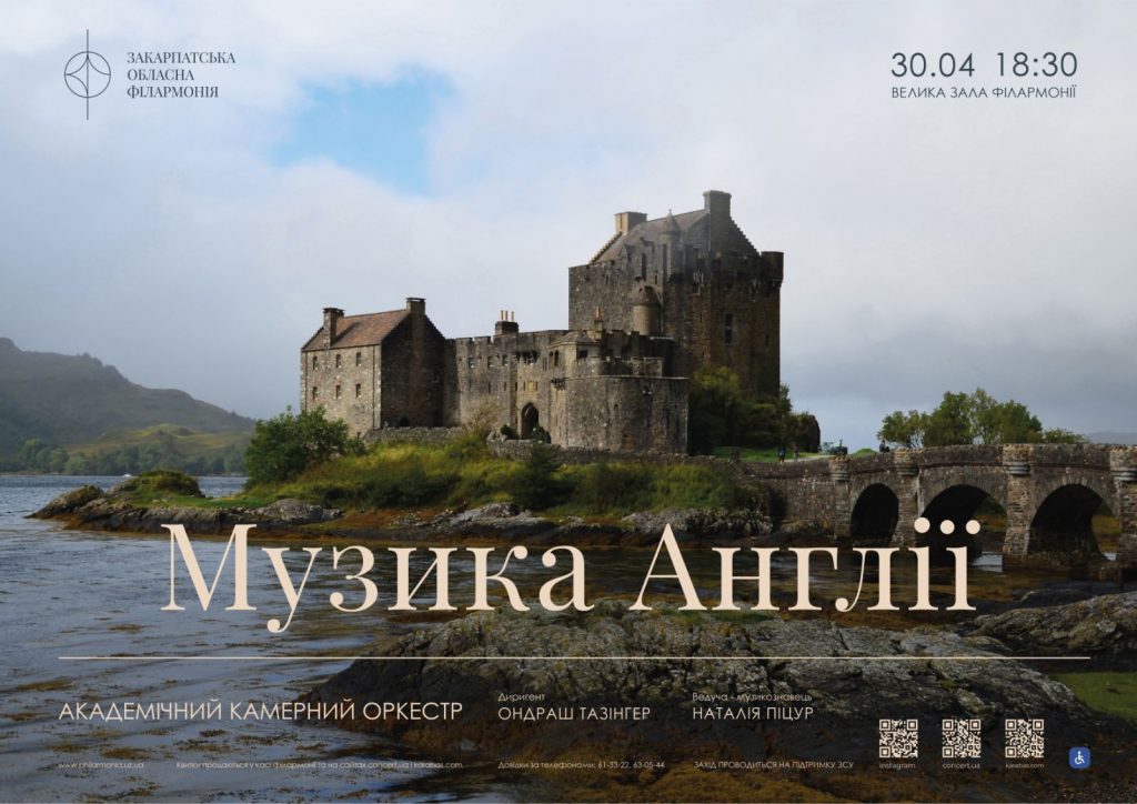 Закарпатська обласна філармонія. запрошує насолодитися «Музикою Англії» – 30 квітня о 18:30.