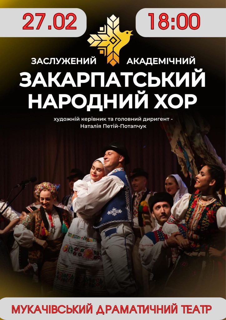 У п’ятницю, 27 лютого, до Мукачева з концертом «Не забудь співаночки наші» завітає Заслужений академічний Закарпатський народний хор.