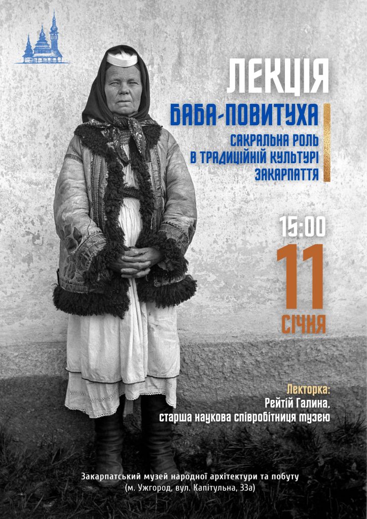 «Баба-повитуха – одна з ключових постатей традиційного суспільства. Вона супроводжувала народження людини, поєднуючи практичні знання з віруваннями, обрядами та магічними уявленнями. Під час лекції поговоримо про її статус, функції та символічне значення в культурі Закарпаття», – анонсують організатори.