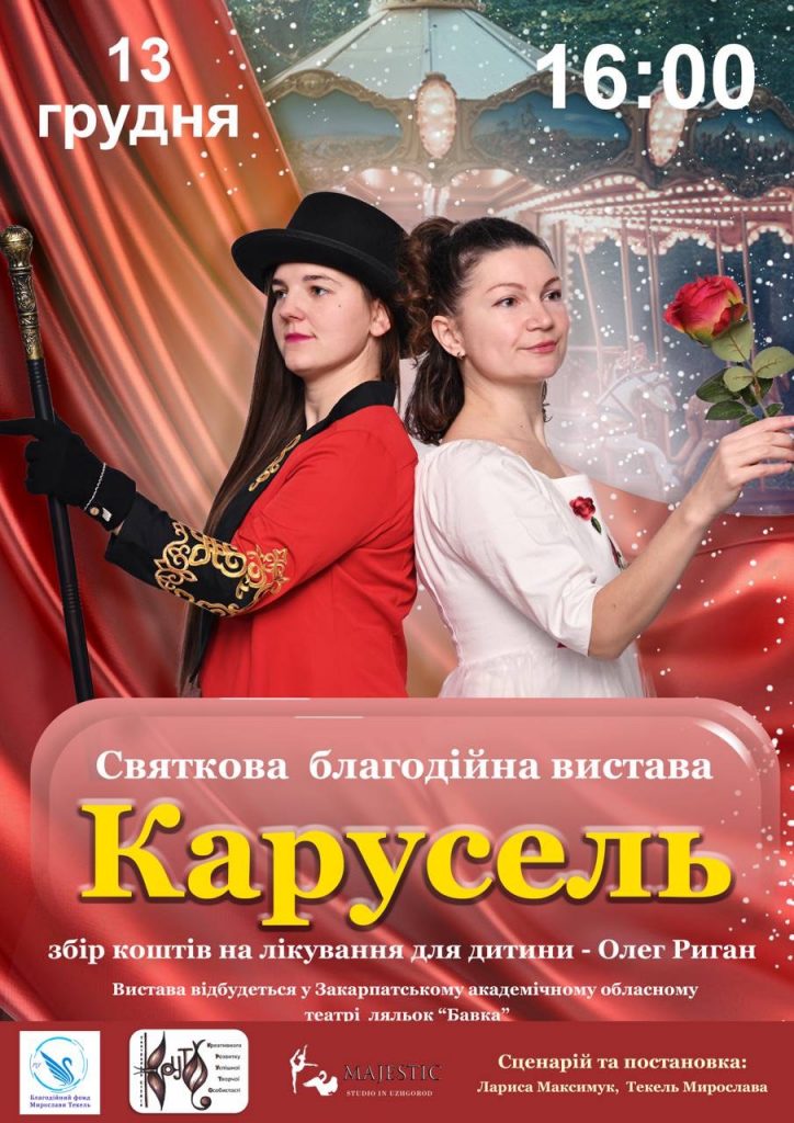 У суботу, 13 грудня, в Ужгороді відбудеться благодійний показ святкової вистави «Карусель» від Театральної студії «КРУТО» та Школи танцю «Majestic» – на підтримку Олега Ригана.