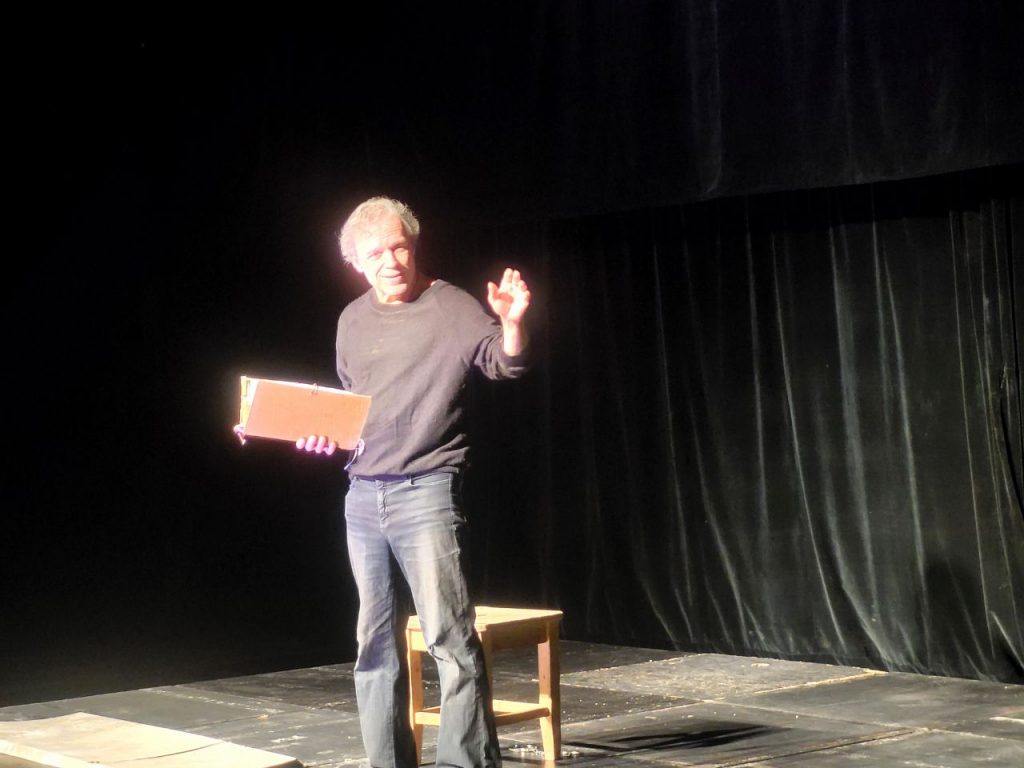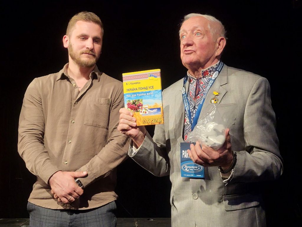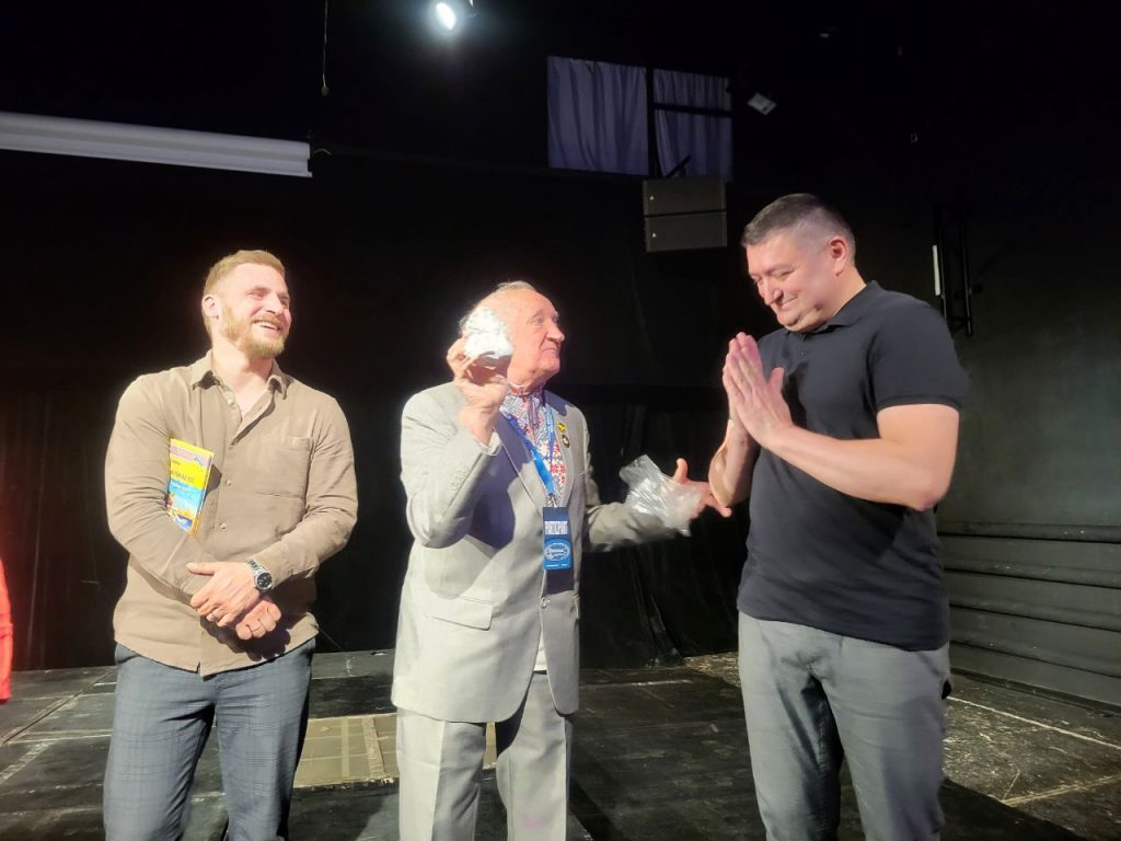 А на малій сцені Закарпатського облмуздрамтеатру відбувся показ вистави «Чорний птах із білою відзнакою», присвяченої життю та творчості Василя Стуса, від Київського академічного театру «Колесо». Автор, режисер і виконавець – Петро Миронов.