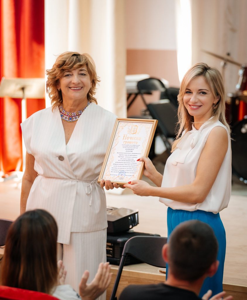 Так, у понеділок, 22 вересня, відбулася зустріч колективу зі студентами Академії культури і мистецтв. В актовій залі закладу всі присутні мали змогу ознайомитися з презентацією творчої діяльності Закарпатського народного хору, поспілкуватися з його керівницею і головною диригенткою Наталією Петій-Потапчук та артистами колективу, які свого часу закінчили цей навчальний заклад – Ольгою Свидою, Іванною Архій, Іриною Кізюр, Валерієм Поповичем, Вікторією Вархол. Зо, що заклади пов’язує давня тісна співпраця, зокрема, АКіМ є головною кузнею кадрів для Закарпатського народного хору – співаків, хореографів, інструменталістів. З вітальним словом до своїх гостей звернулися ректорка вишу Наталія Шетеля та викладач Олександр Карбованець. Зустріч пройшла в теплій і невимушеній атмосфері, а святковості їй додали виступи солістів колективу – заслуженої артистки України Яни Садварій, Ольги Свиди й танцювального дуету в складі Вікторії Вархол і Валерія Поповича.