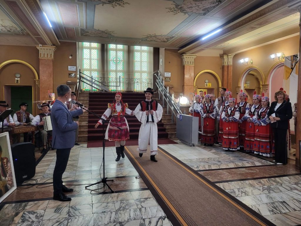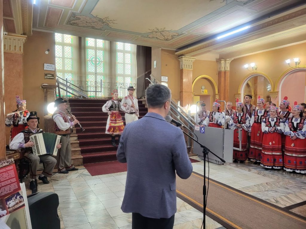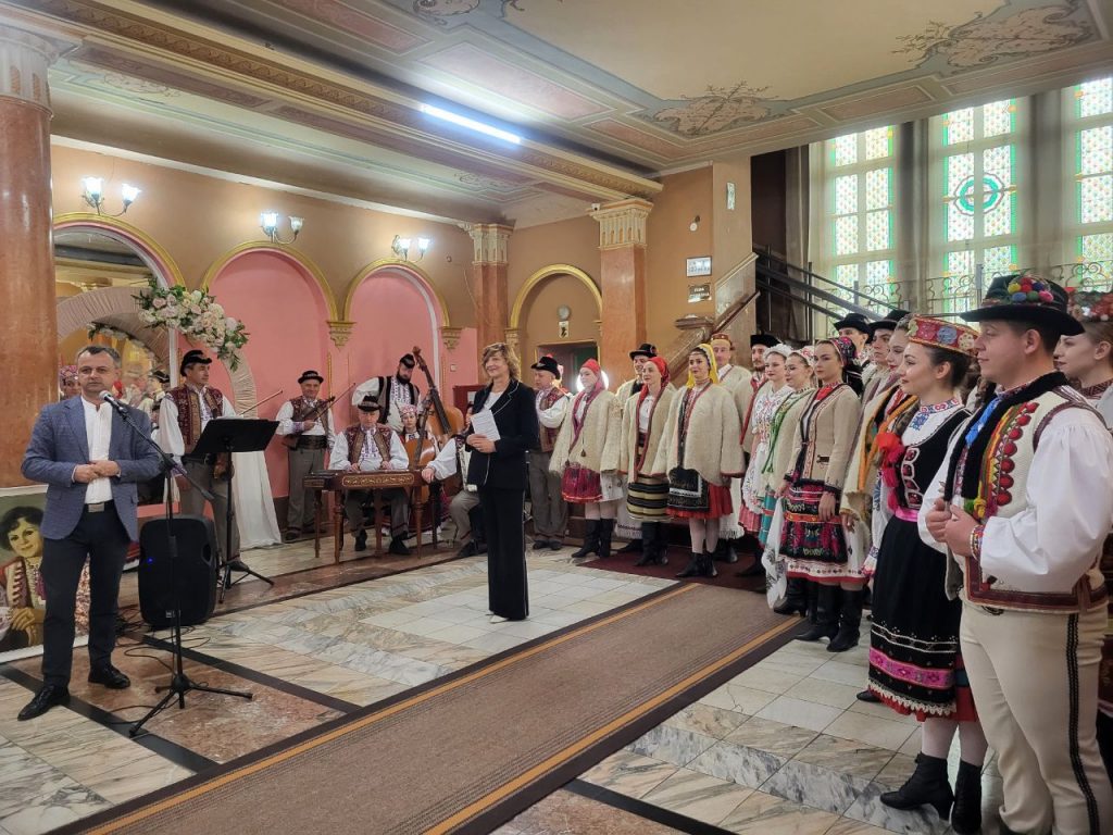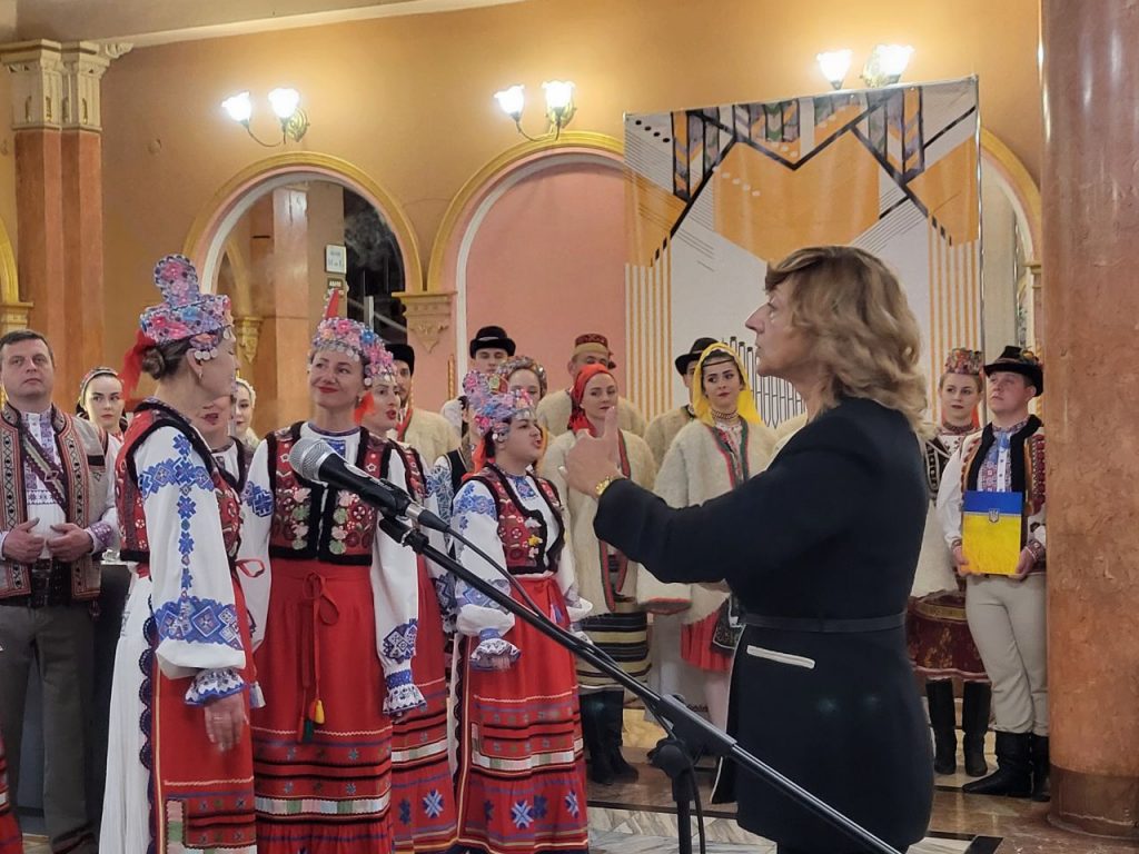 Захід розпочали у фоє будівлі Закарпатської обласної філармонії, де гостей зустріли артисти хору на чолі з директоркою-художньою керівницею та головною диригенткою, заслуженою працівницею культури України Наталією Петій-Потапчук. У своєму вступному слові вона зазначила: цей день – дуже хвилюючий для колективу. «Впродовж 80 років наш хор працює безперервно, так, бували складні часи, але колектив не припиняв свою діяльність, і сьогодні продовжує працювати, прославляти наш край та нашу Україну. Дуже хочемо, щоби так було і надалі. Віримо, що народне мистецтво має велику силу, й особливо в сьогоденні – надихає, зміцнює, дарує надію на краще майбутнє».