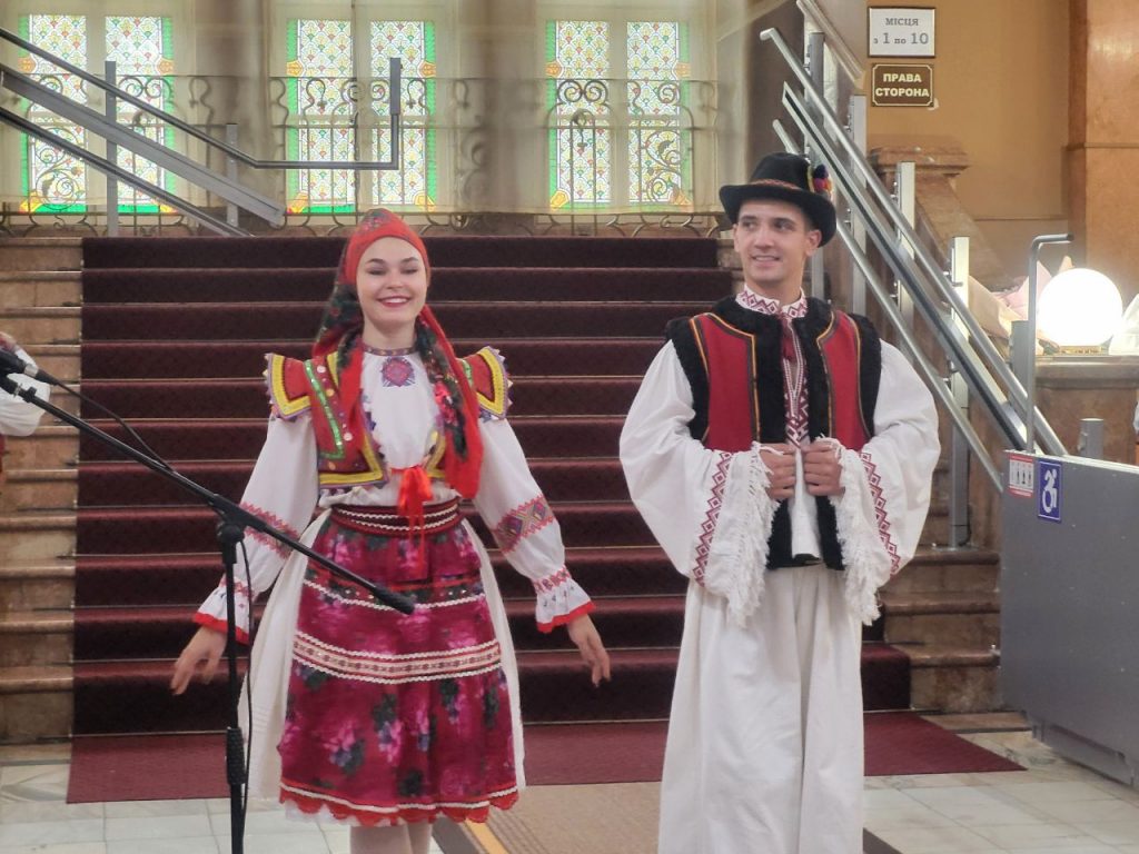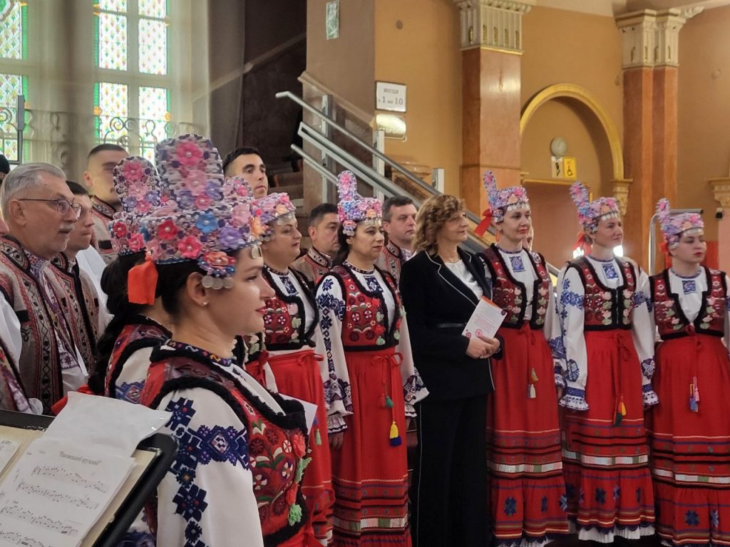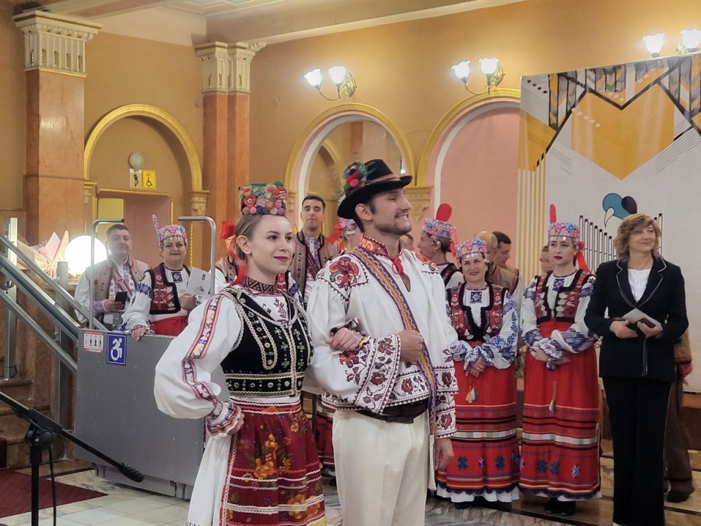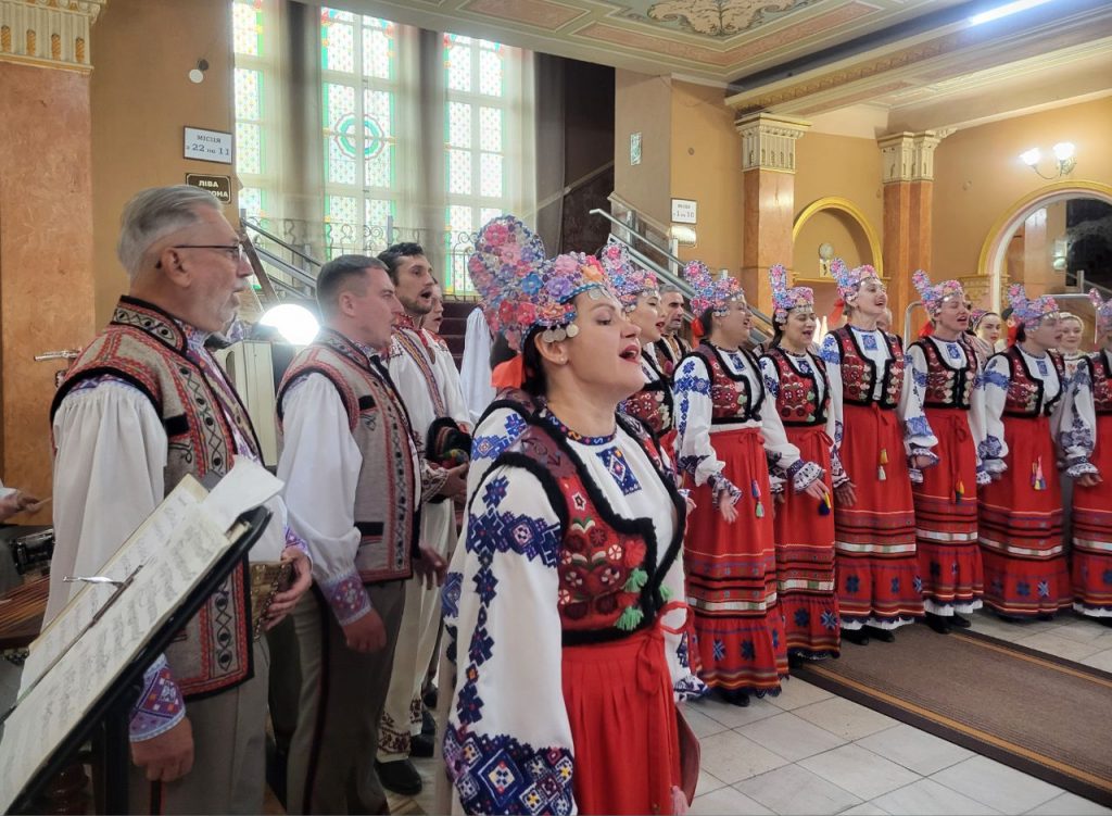 Захід розпочали у фоє будівлі Закарпатської обласної філармонії, де гостей зустріли артисти хору на чолі з директоркою-художньою керівницею та головною диригенткою, заслуженою працівницею культури України Наталією Петій-Потапчук. У своєму вступному слові вона зазначила: цей день – дуже хвилюючий для колективу. «Впродовж 80 років наш хор працює безперервно, так, бували складні часи, але колектив не припиняв свою діяльність, і сьогодні продовжує працювати, прославляти наш край та нашу Україну. Дуже хочемо, щоби так було і надалі. Віримо, що народне мистецтво має велику силу, й особливо в сьогоденні – надихає, зміцнює, дарує надію на краще майбутнє».