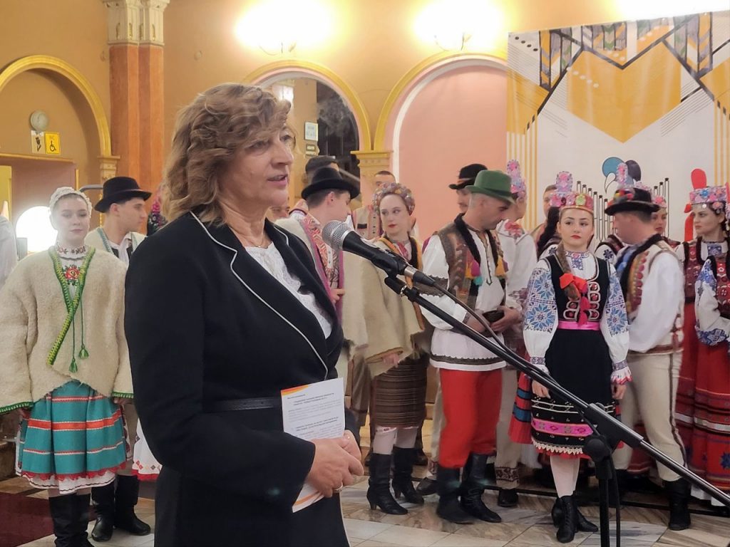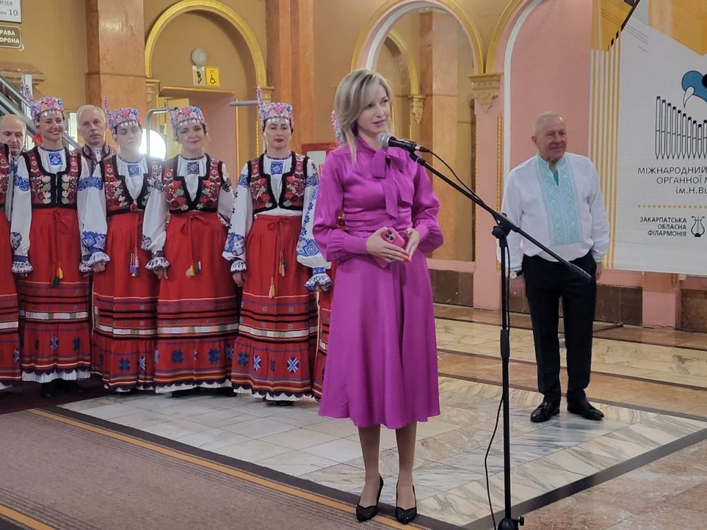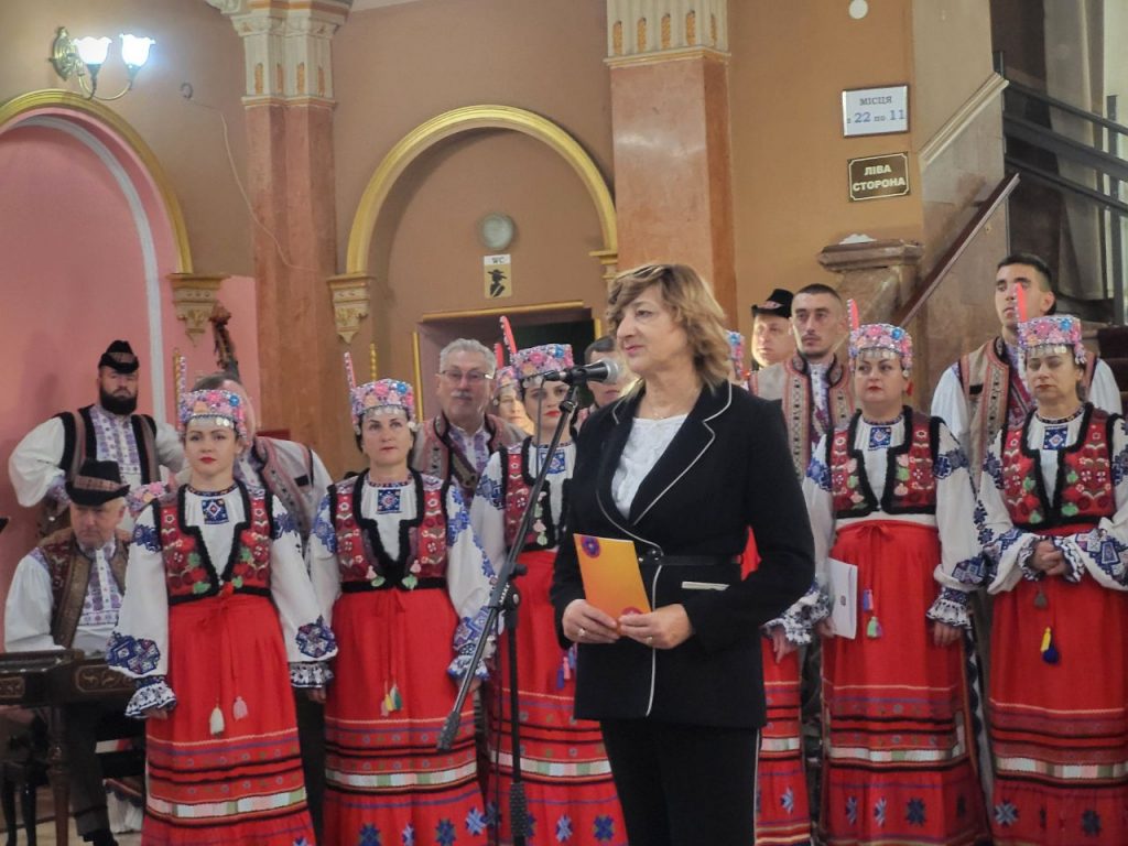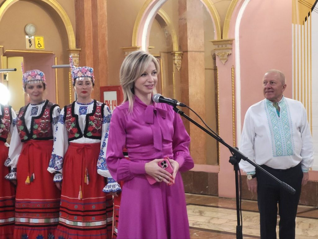 Своєю чергою, вітання від голови Закарпатської обласної ради Романа Сарая артистам переказала депутатка та голова профільної комісії облради, ректорка Академії культури і мистецтв, доктор педагогічних наук, професорка, заслужена працівниця культури України Наталія Шетеля.