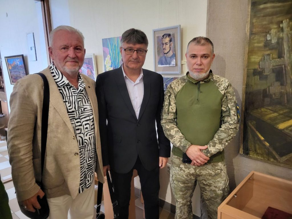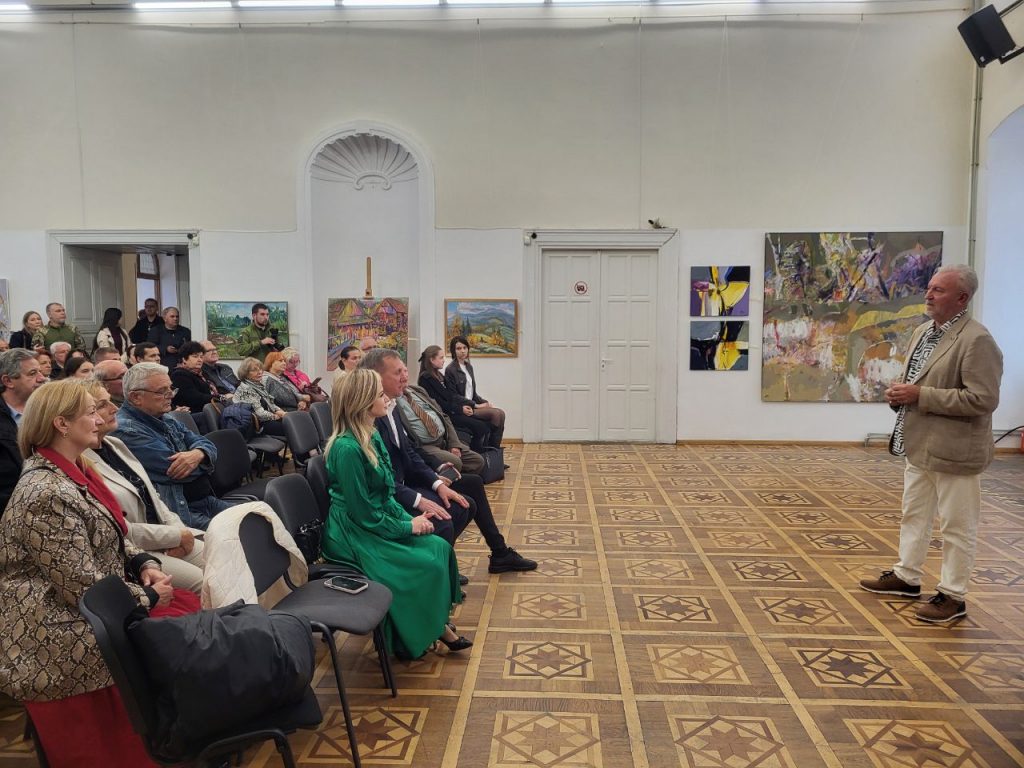 Долучилися до вітальних виступів, подякували митцям за творчість та стійкість, осмислення реалій сьогодення у своїх роботах, і авжеж – діяльність у війську та для війська, міський голова Ужгорода Богдан Андріїв, депутатка та голова профільної комісії Закарпатської обласної ради, ректорка Академії культури і мистецтв, доктор педагогічних наук, професорка, заслужена працівниця культури України Наталія Шетеля та ректор Закарпатської академії мистецтв, професор, доктор мистецтвознавства Михайло Приймич.