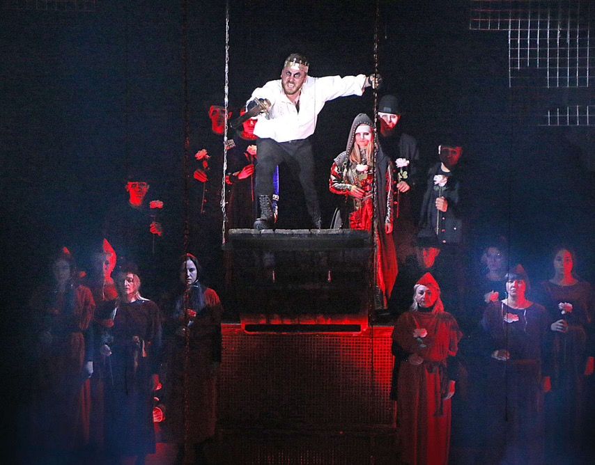 У головній ролі – директор-художній керівник театру Рудольф Дзуринець, який, нагадаємо, саме за втілення образу Річарда III нещодавно здобув Обласну премію ім.Ю.-А. та Є.Шерегіїв у галузі театрального мистецтва в номінації «Актор».