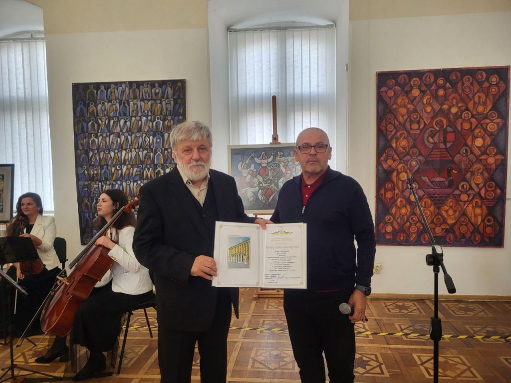 Від імені очільника Закарпатської ОВА Мирослава Білецького привітав митця заступник директора департаменту культури Віктор Кравчук, який вручив Петру Фелдеші за вагомий особистий внесок у розвиток образотворчого мистецтва, значні творчі досягнення і високу професійну майстерність почесну грамоту Закарпатської обласної військової адміністрації, а також почесну грамоту департаменту, якою автора було відзначено з нагоди відкриття виставки до Всеукраїнського дня художника.
