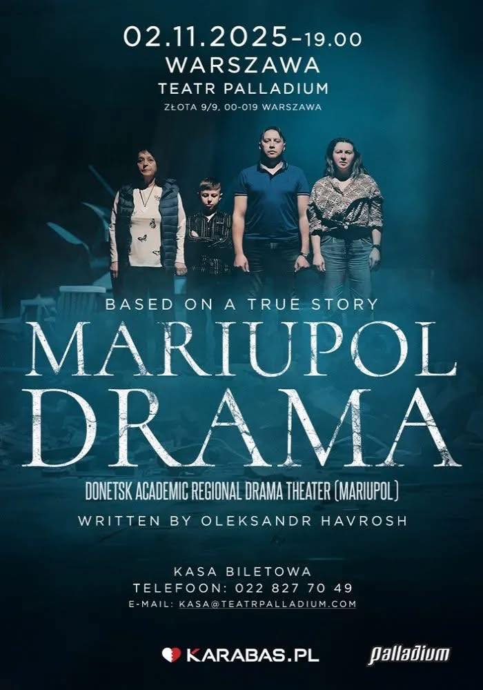 Показ вистави супроводжує фотовиставка, організована KARABAS.COM за підтримки партнера Fram – майстерні, де переобладнують звичайні автомобілі під якісні евакуаційні. Акція присвячена правді про війну російського терориста в Україні. Кожен знімок – це документ нашої реальності. Світ має знати. Після завершення показу провідна українська фундація в Нідерландах VOLYA STICHTING провела благодійний аукціон – збір коштів на потреби 93 ОМБР «Холодний яр». Донецький театр долучився до цієї місії. Лотом стала й афіша вистави «Маріупольська драма» з автографами артистів. Колектив висловлює вдячність KARABAS.COM за організацію цього туру.