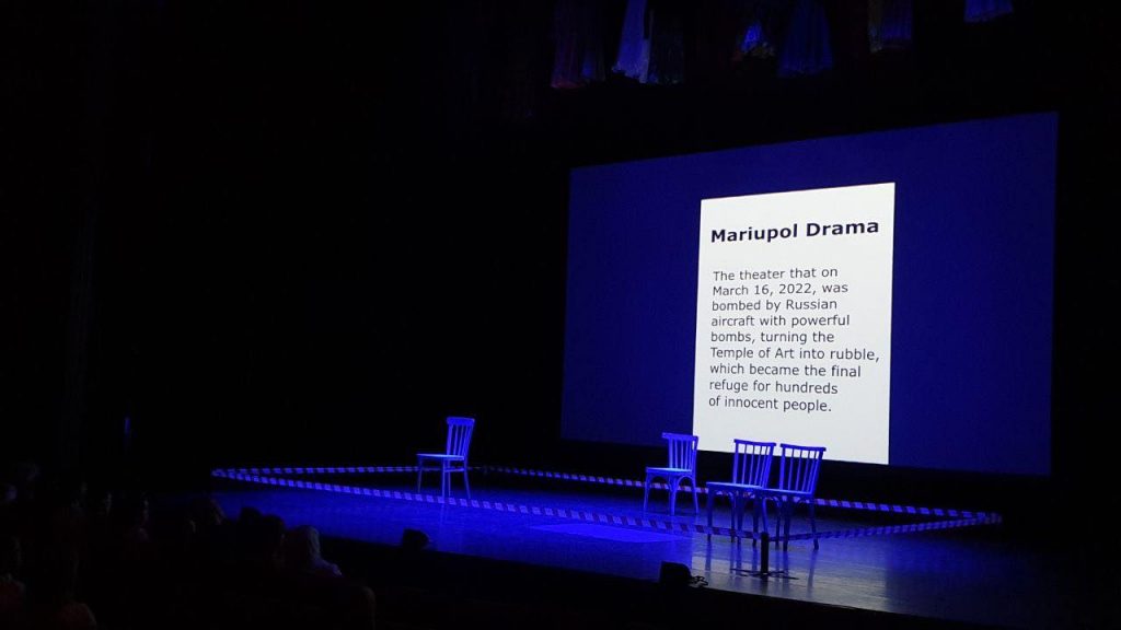 «Маріупольська драма» – це художнє свідчення злочину російського агресора в центрі мирного українського міста. Вистава створена на основі розповідей тих, хто вижив. Пʼєсу написав закарпатський драматург Олександр Гаврош, провівши понад 50 годин інтерв’ю з акторами-очевидцями трагічних подій. Символічно, що виставу про воєнні злочини росії цього разу представили саме у місті, де ухвалюються рішення про справедливість.