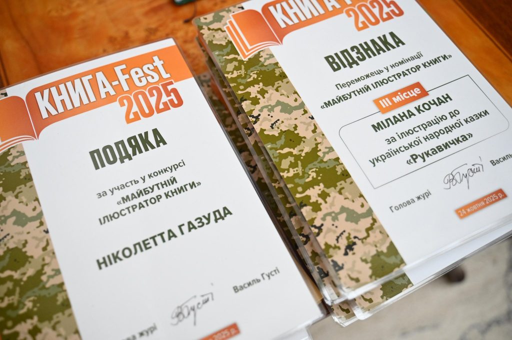 У День української писемності та мови в атріумі головної адмінбудівлі краю урочисто підбили підсумки обласних конкурсів «Мистецтво книги» та «Майбутній ілюстратор книги», що були проведені в межах виставки «Книга-фест 2025».