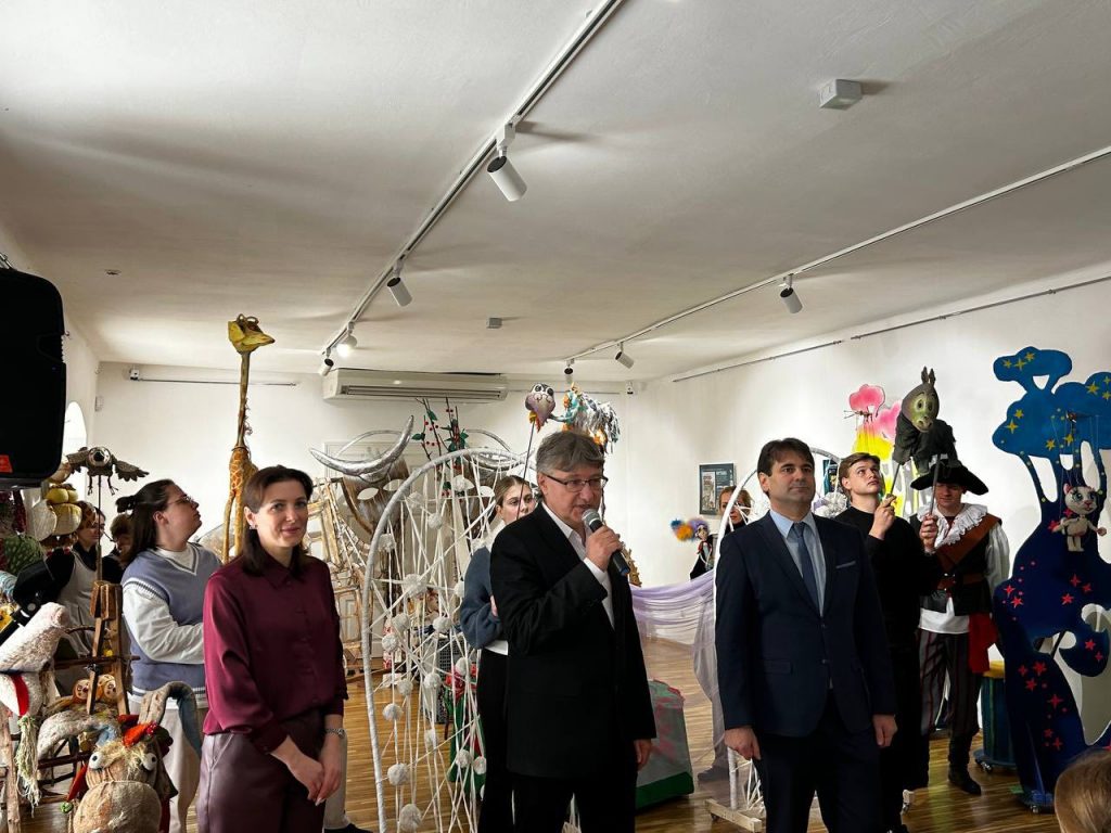 З вітальним словом із нагоди відкриття виставки виступили директор департаменту культури Закарпатської ОВА, заслужений артист України Євген Тищук, директорка Закарпатського музею Ольга Шумовська та директор-художній керівник театру Мирослав Петій, який принагідно передав на зберігання до музею три архівні ляльки з вистави «Жирафа і носоріг»: лікаря Марабу, жирафу та носорога.