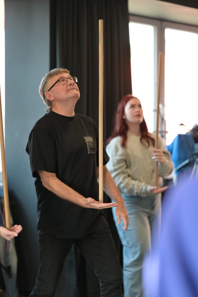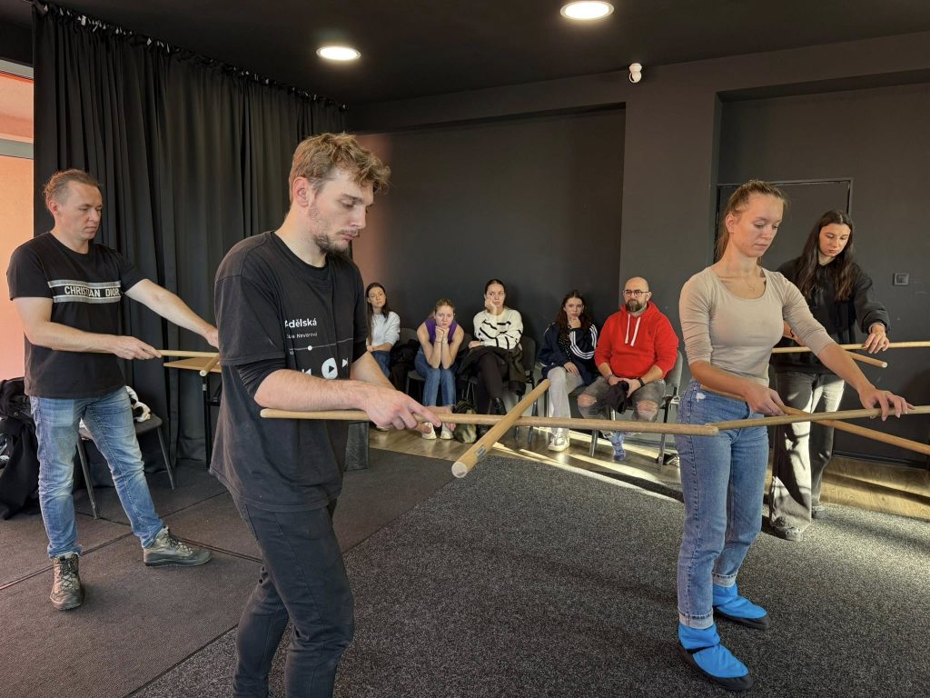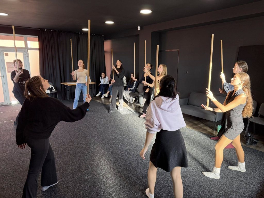 Викладач кафедри мистецьких дисциплін Академії культури і мистецтв Євген Тищук провів майстерклас з акторської біомеханіки, направлений на формування свідомості актора, організацію та контроль дії, розвиток координації, реакції на зовнішні імпульси (посили), почуття ансамблю, взаємодії з партнером, простором і часом.