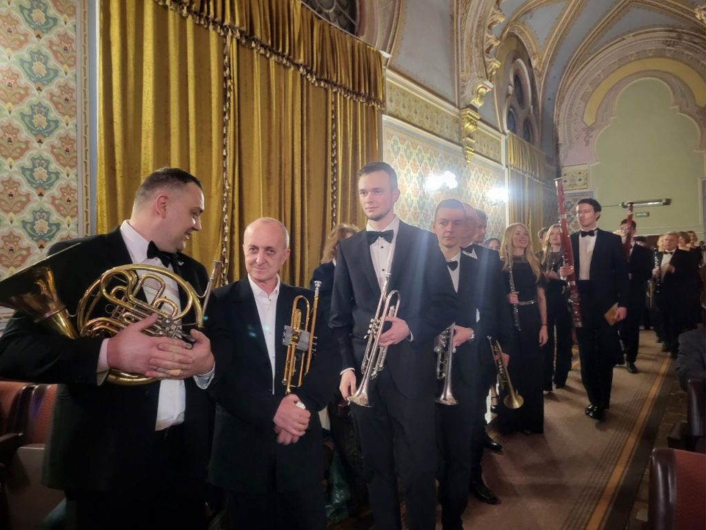 Від імені керівництва області привітав музикантів директор департаменту культури Закарпатської ОВА, заслужений артист України Євген Тищук, який нагородив колектив почесною грамотою за сумлінну працю, вагомий внесок у розвиток музичного мистецтва краю та високий професіоналізм.