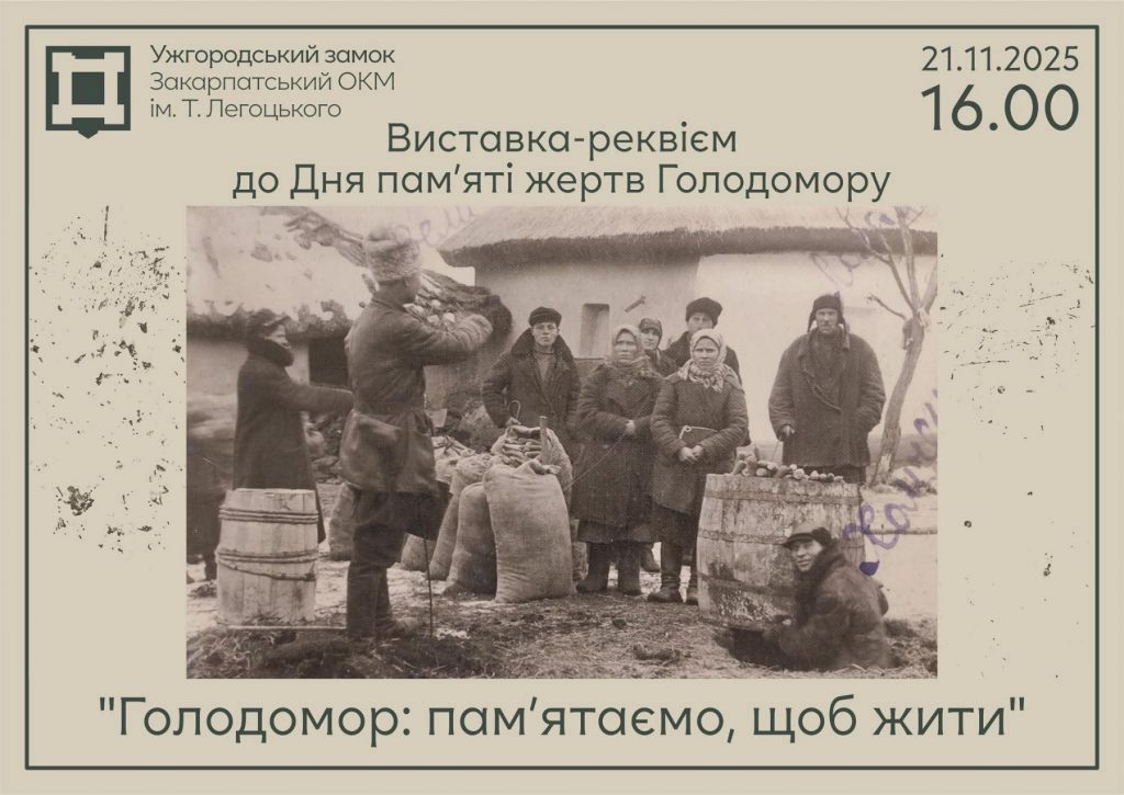21 листопада о 16:00 – відкриття виставки-реквієму «Голодомор: пам’ятаємо, щоб жити».