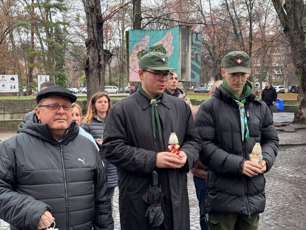 День Гідності та Свободи відзначили в обласному центрі Закарпаття. На площі Народній керівники краю і міста, військовослужбовці, студенти, громадськість запалили лампадки та поклали квіти до Пам’ятного знака борцям за свободу і незалежність України.