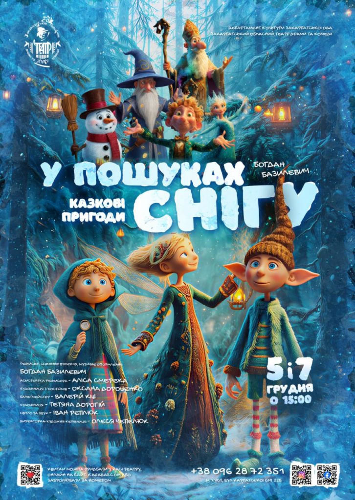 5, 6 і 7 грудня – покази казки «У пошуках снігу» (автор і режисер-постановник – Богдан Базилевич) для дітей пільгових категорій та всіх охочих відвідувачів (час уточнюється).