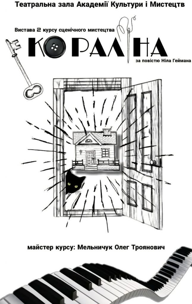 5 грудня об 11:00 – благодійний показ вистави «Кораліна» за мотивами повісті Ніла Геймана у виконанні студентів II курсу спеціальності «Сценічне мистецтво», майстер курсу – Олег Мельничук (театральна зала).