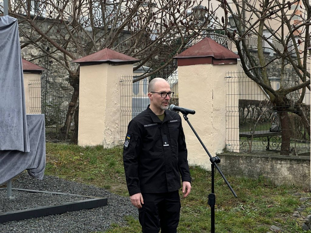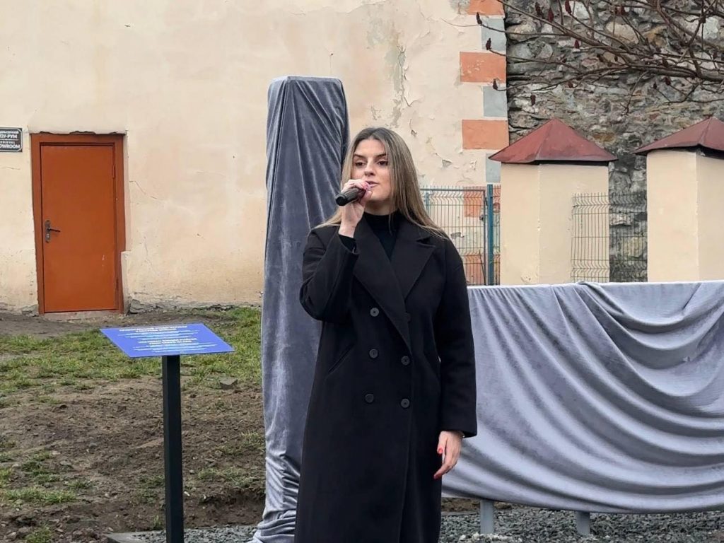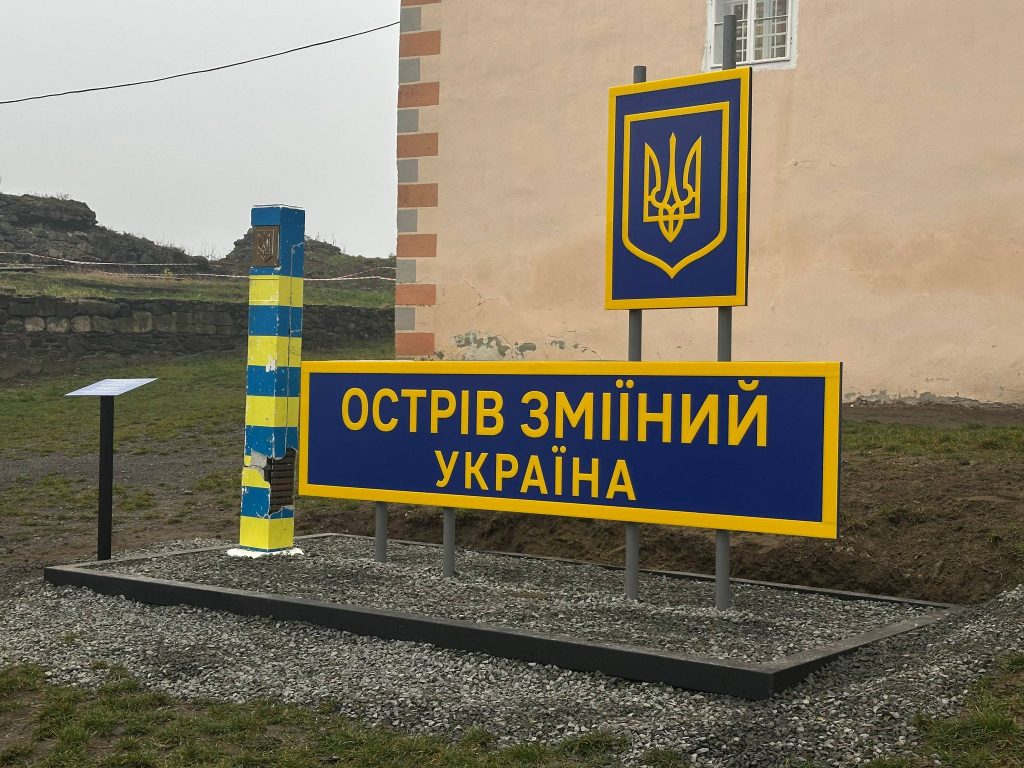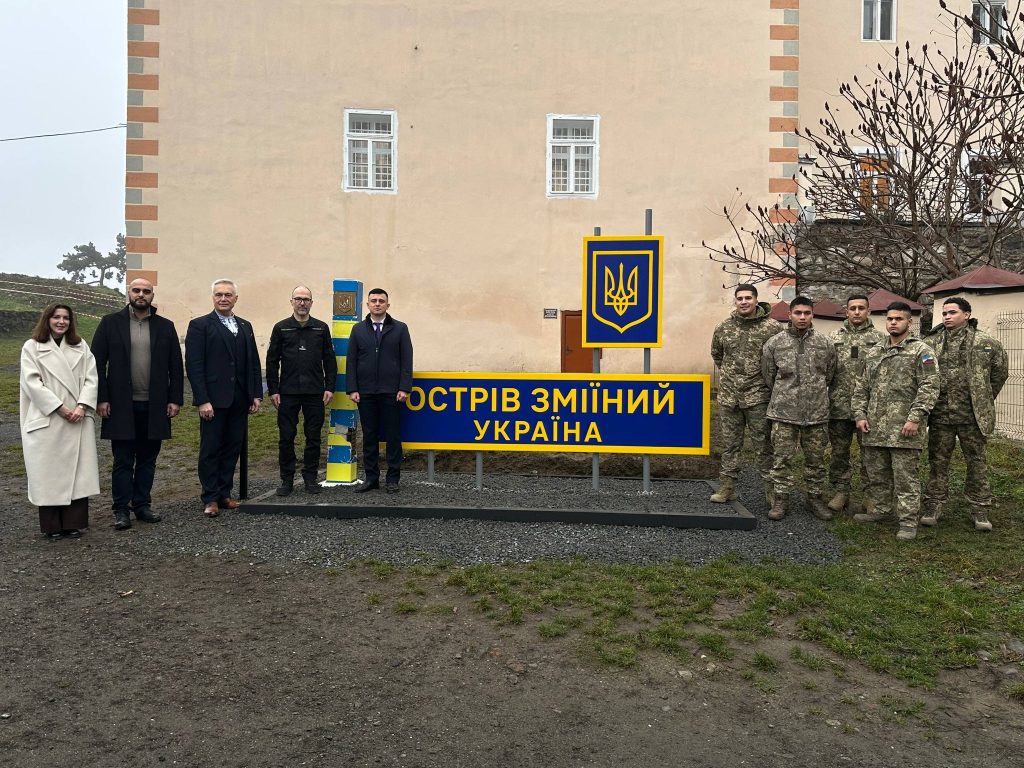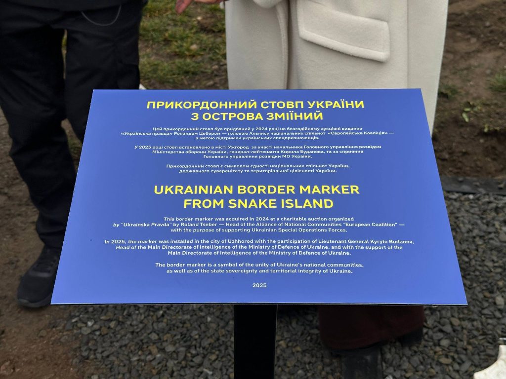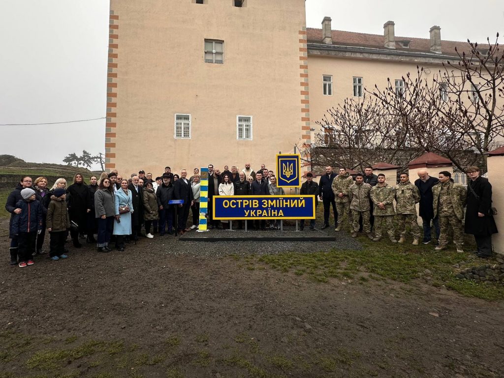 На території Ужгородського замку встановлено особливий знак, який віднині нагадуватиме відвідувачам про стійкість і незламність українців у війні, що триває – прикордонний стовп із острова Зміїний.