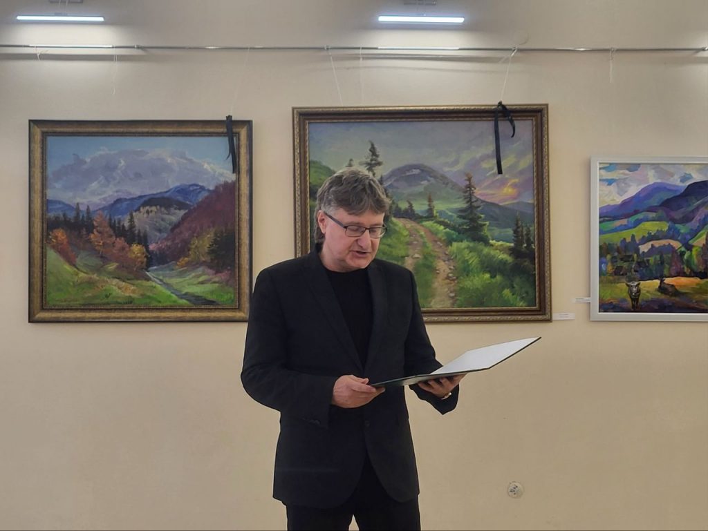 Привітав спільноту митців і поділився власними враженнями від виставки директор департаменту культури, заслужений артист України Євген Тищук. Від імені голови Закарпатської облдержадміністрації Мирослава Білецького вручив колективу Творчого об’єднання професійних художників Закарпаття Подяку за вагомий внесок у розвиток образотворчого та декоративно-прикладного мистецтва, високу професійну майстерність та з нагоди річниці діяльності.