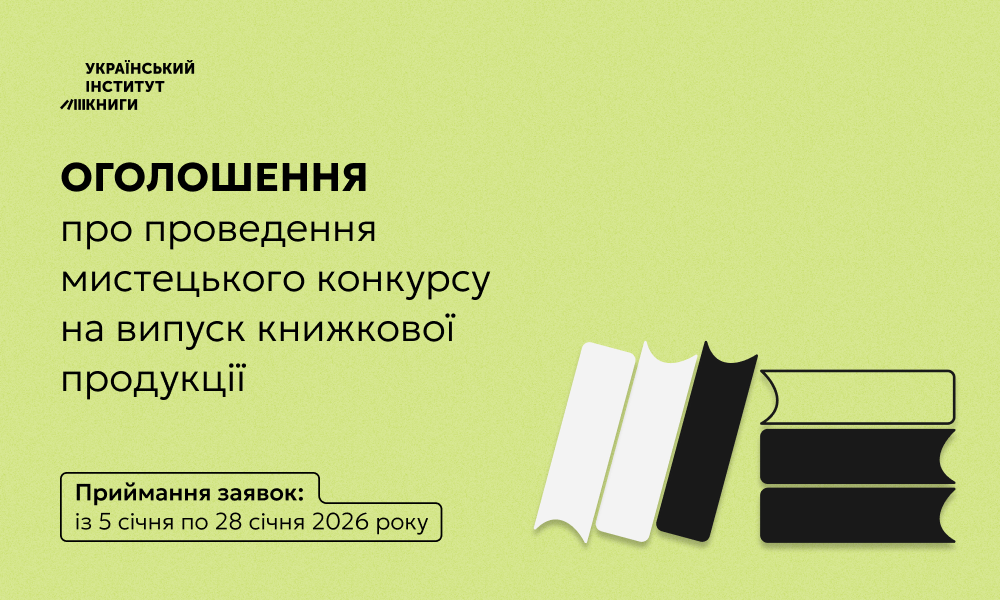 Український інститут книги оголосив про початок проведення мистецького конкурсу культурно-мистецьких проєктів, спрямованих на випуск книжкової продукції.
