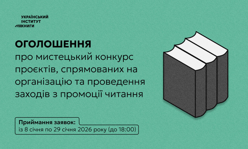 Український інститут книги оголосив про початок мистецького конкурсу проєктів, спрямованих на організацію та проведення заходів із промоції читання у 2026 році.