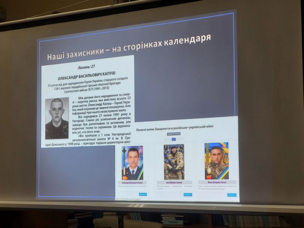 З 2022 року до календаря доєднали й імена військових, які полягли за незалежність України. Одному з них – Герою України Олександру Капушу, який був у Дебальцівському котлі та загинув у 2015 році, статтю присвятила журналістка Ксенія Шокіна. На презентацію ж календаря прийшли мати загиблого Воїна Людмила Капуш та його вчителька Христина Мещерякова, котрі відзначили важливість збереження, зокрема і на сторінках цього видання, пам’яті про полеглих Захисників і цінність їхнього подвигу в ім’я Батьківщини.