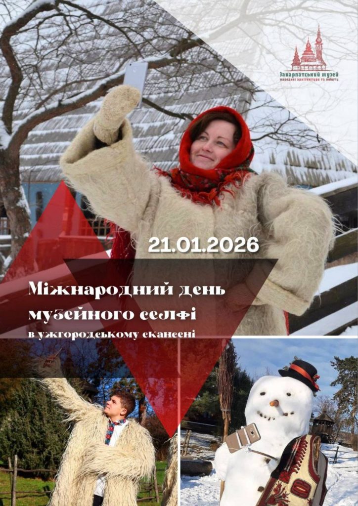 Закарпатський музей народної архітектури та побуту запрошує сфотографуватися на тлі музейних хатинок або найулюбленіших експонатів із 9:00 до 17:00. Далі світлинами потрібно поділитися в коментарях під дописом про проведення Дня музейного селфі на сторінках закладу в соцмережах, позначивши двох друзів. Переможців конкурсу оголосять 26 січня.
