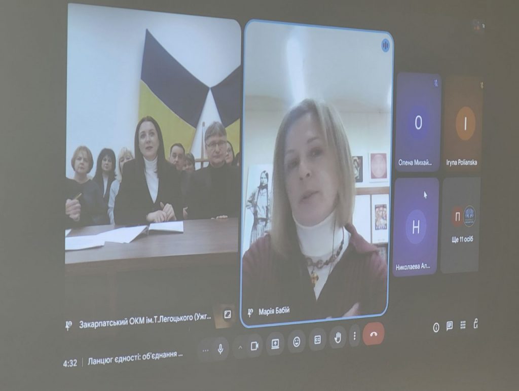 Як зауважив на початку заходу модератор, завідувач відділу науково-освітньої роботи Михайло Лесів, музей щороку намагається відзначити цю важливу для історії України дату по-особливому. Торік це був символічний живий ланцюг на пішохідному мості в Ужгороді, що сполучив два береги Ужа. Цього ж разу вирішили з’єднати у віртуальний ланцюг музеї України – від заходу до сходу нашої держави.