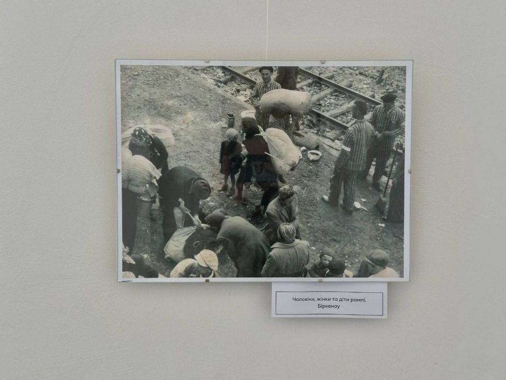«На виставці представлено інсталяцію з оригінальних експонатів, що відображає депортацію євреїв до концтабору та виставлено копії світлин із так званого «Альбому Аушвіц». Фотознімки були зроблені співробітниками СС, до обов’язків яких входило фотографування в’язнів для документів та зняття відбитків пальців. На фотографіях зафіксовано прибуття угорських євреїв, депортованих із Закарпаття. Значну частину з них доставили з Берегівського гетто, яке слугувало збірним пунктом для єврейського населення з кількох менших населених пунктів. «Альбом Аушвіца» зберігся завдяки Лілі Якоб, уродженці села Білки (тепер Хустський район), яка виявила його в одній із казарм СС після звільнення табору. Альбом було передано на зберігання до Яд Вашем (Ізраїльський національний меморіал Голокосту), згодом – відреставровано, описано в електронній архівній базі й відтак – оцифровано», – зазначають у музеї.