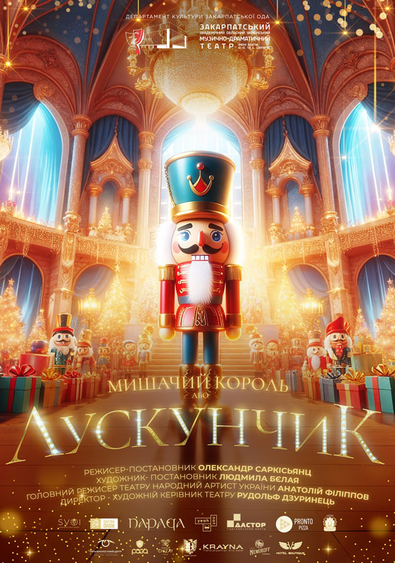 – о 12:00 – вистава «Мишачий король або Лускунчик» за мотивами казки Ернеста Теодора Амадея Гофмана, режисер-постановник – Олександр Саркісьянц;
