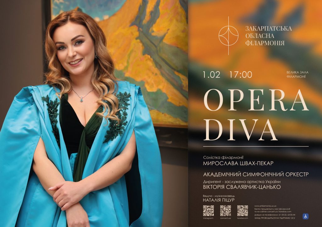 1 лютого о 17:00 – концерт «Opera Diva» з найкращих арій до відомих опер у виконанні солістки філармонії Мирослави Швах-Пекар і Академічного симфонічного оркестру під орудою заслуженої артистки України Вікторії Свалявчик-Цанько.