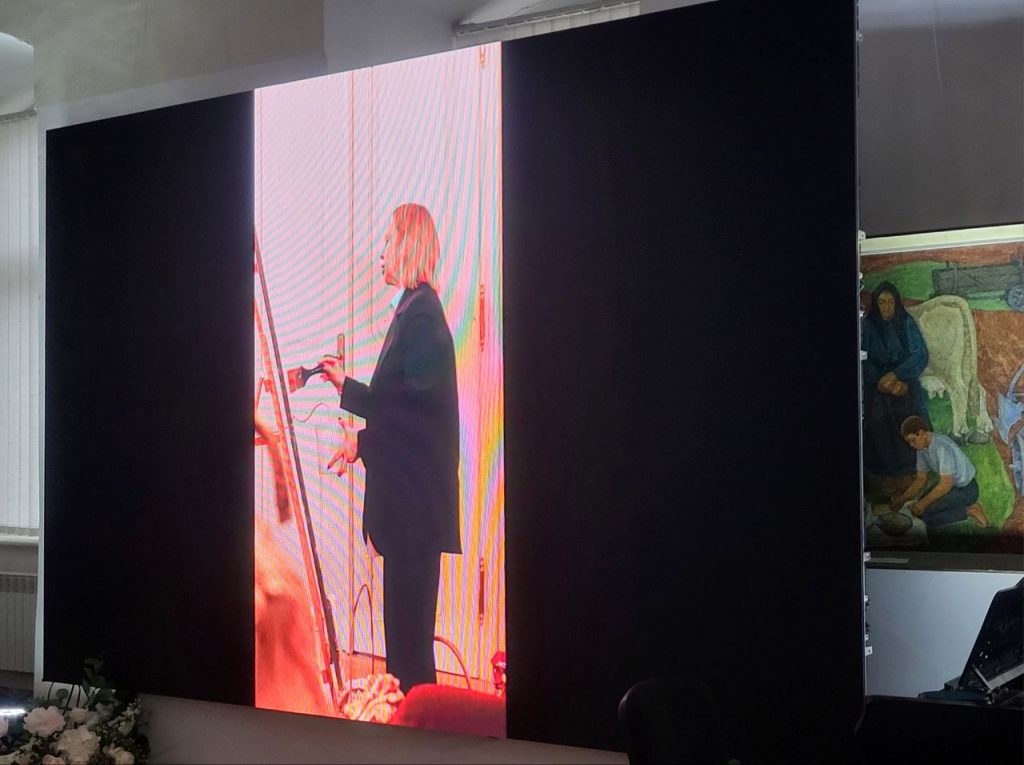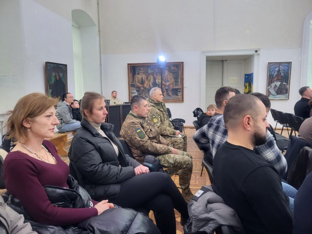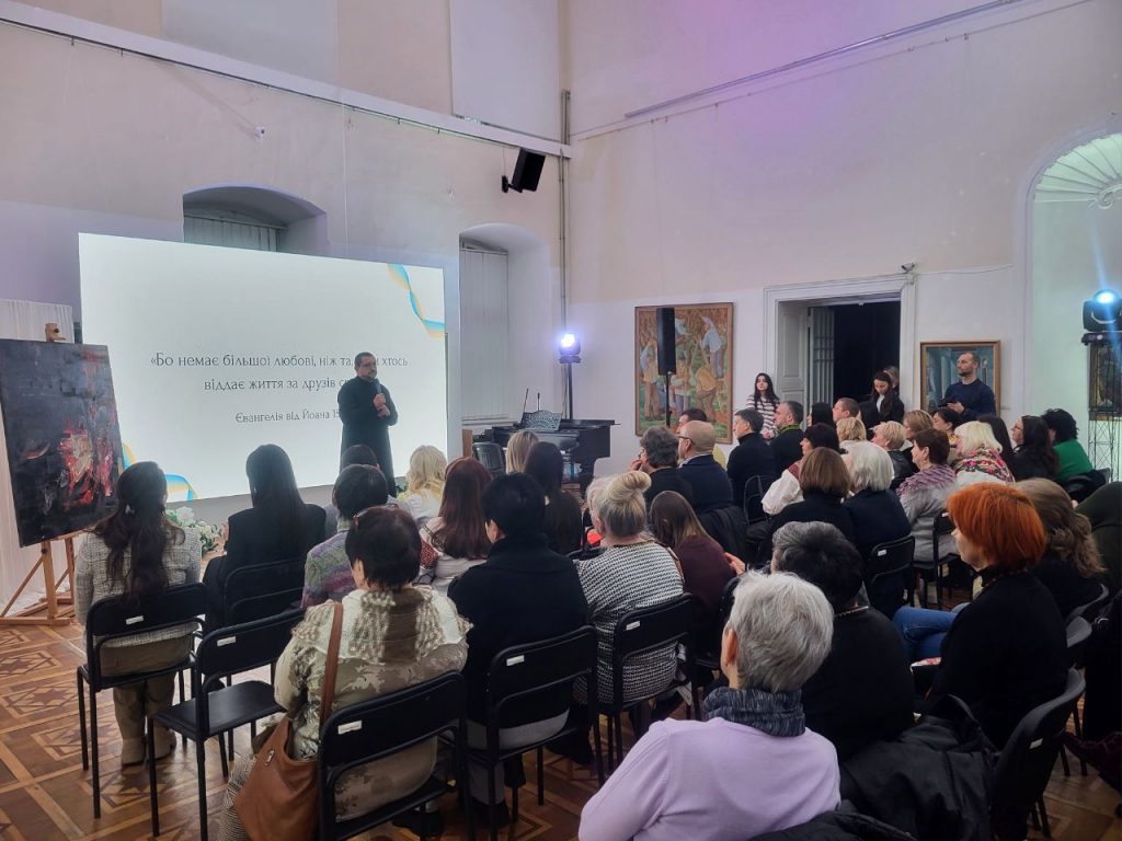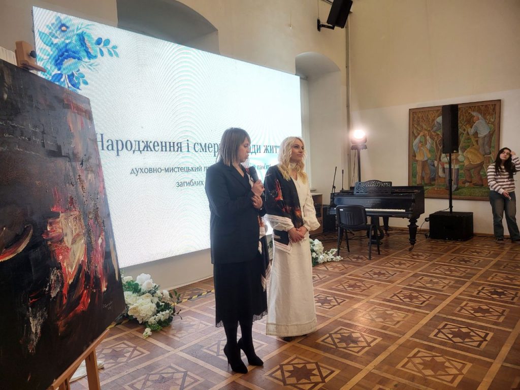 Детально розповіли про проєкт Марія Афіян і Оксана Брензович, доповнивши свою розповідь відеороликом, що відтворив найбільш промовисті миті тієї самої зустрічі з родинами полеглих захисників і показав, власне, процес роботи над картиною. Долучилися до виступів отець Владислав Ігнатишин і голова ГО «Ми турбуємось» Євген Найгебавер.