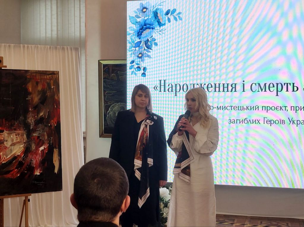 «Народження і смерть заради життя» – таку назву має авторський проєкт Марії Афіян, реалізований у співпраці з художницею Оксаною Брензович за підтримки управління ветеранської політики Закарпатської облдержадміністрації, ГО «Ми турбуємось» і з благословення єпископа Мукачівської греко-католицької єпархії Теодора Мацапули. Духовно-мистецький захід провели 21 грудня в Резиденції Мукачівських єпископів за участю родин полеглих захисників. Під час заходу, зокрема, було створено картину, презентовану нині.
