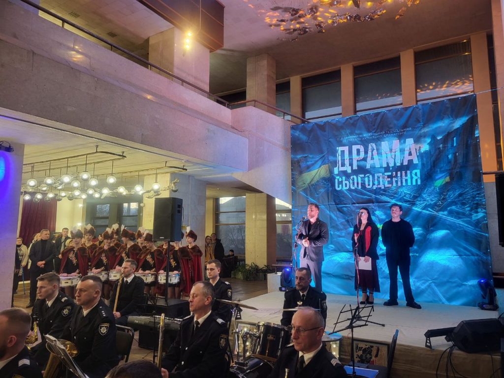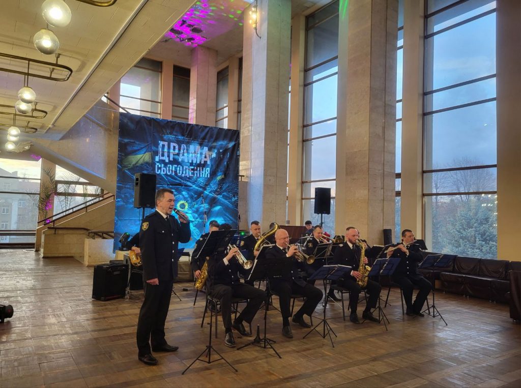 Зустрів шанувальників театрального мистецтва естрадно-духовий оркестр Головного управління Національної поліції у Закарпатській області. Колектив виконав програму зі знакових українських мелодій і пісень, що нині відлунюють у серцях кожного українця. Доповнили атмосферу виставка бойової атрибутики та трофеїв, а також тематична добірка творів художниці Альони Стасюк.