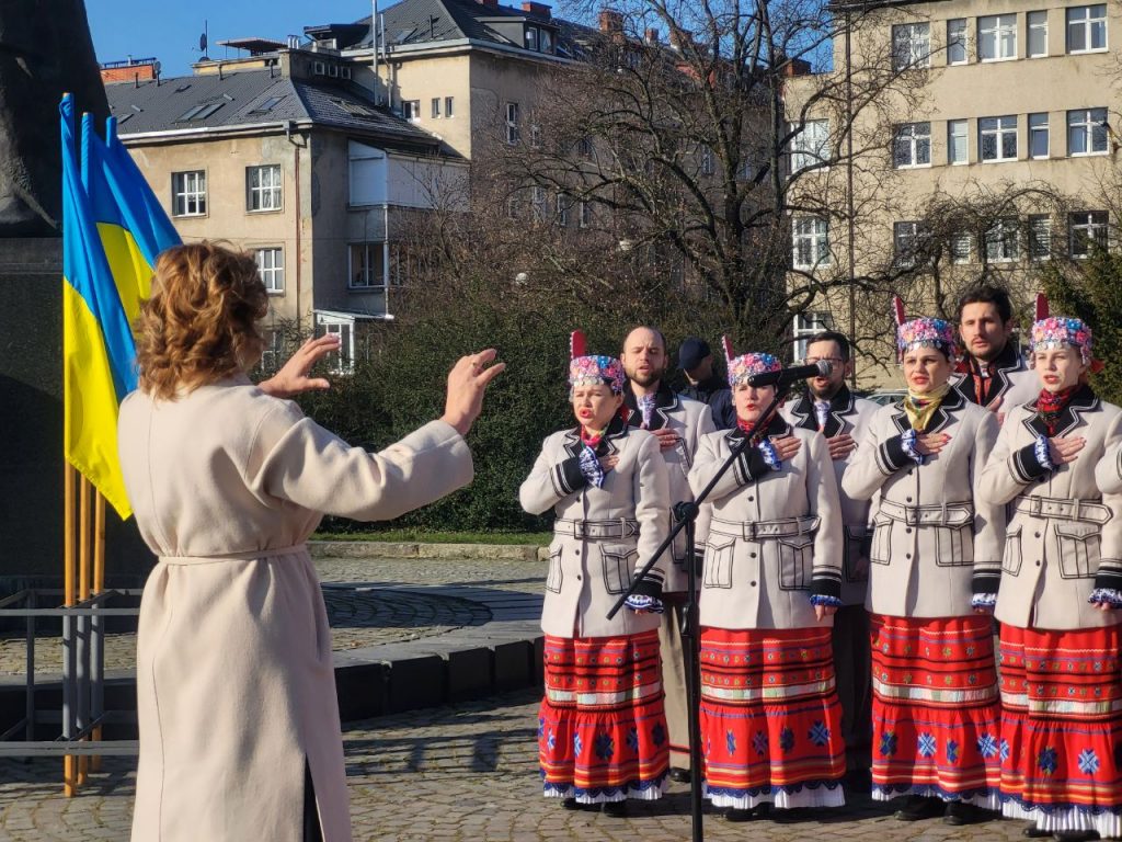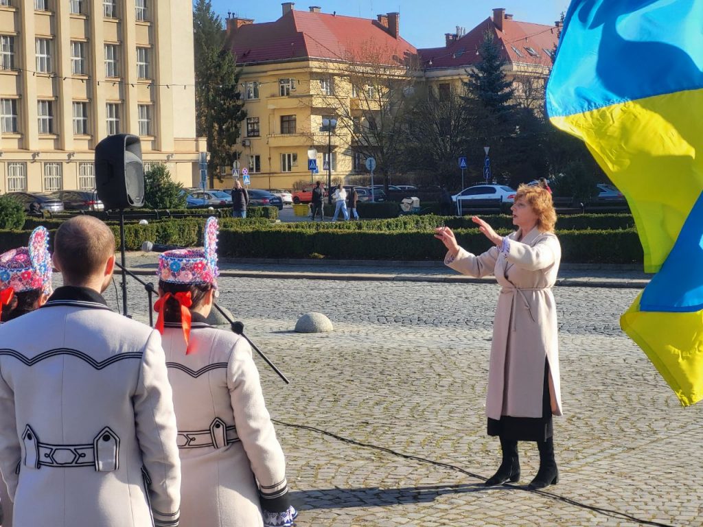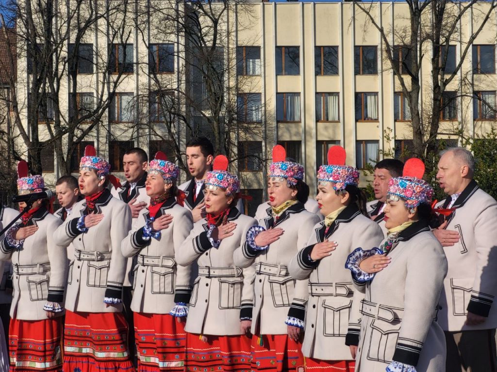 Державний Гімн України та духовний гімн «Боже великий, єдиний» учасники заходу виконали разом із Заслуженим академічним Закарпатським народним хором. Також колектив під керівництвом заслуженої працівниці культури України Наталії Петій-Потапчук заспівав композиції «Реве та стогне Дніпр широкий» і «Заповіт» на слова Тараса Шевченка (звукове оформлення – Закарпатський академічний обласний театр ляльок).