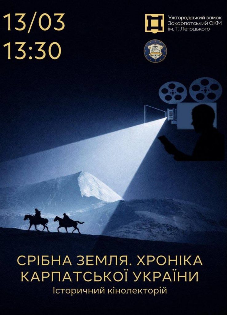 – о 13:00 – «Срібна Земля. Хроніка Карпатської України 1919-1939» – історичний кінолекторій, під час якого про героїчну епоху українського державотворення на Закарпатті розповість старший науковий співробітник відділу новітньої історії, Меморіального музею-кімнати А.Волошина, доктор історичних наук, професор Василь Міщанин (Ужгородський науковий ліцей).