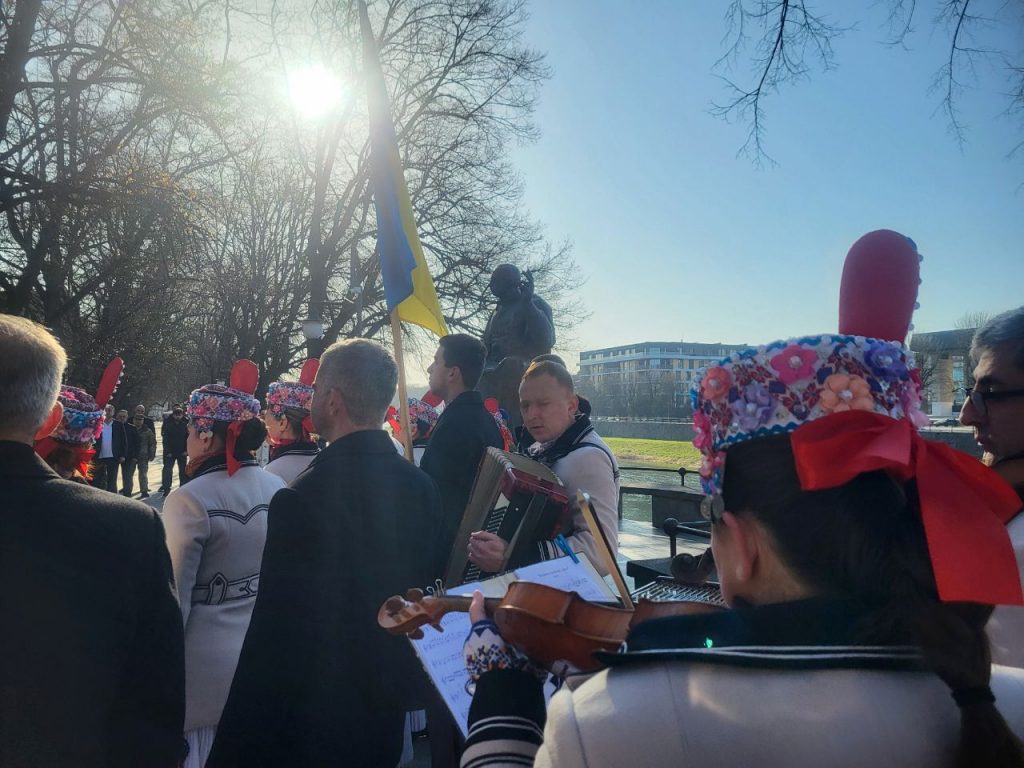 У виконанні Заслужений академічний Закарпатський народний хор під керівництвом Наталі Петій-Потапчук прозвучали відомa композиція «Понад Хустом ворон кряче», низка стрілецьких пісень і «Молитва за Україну».