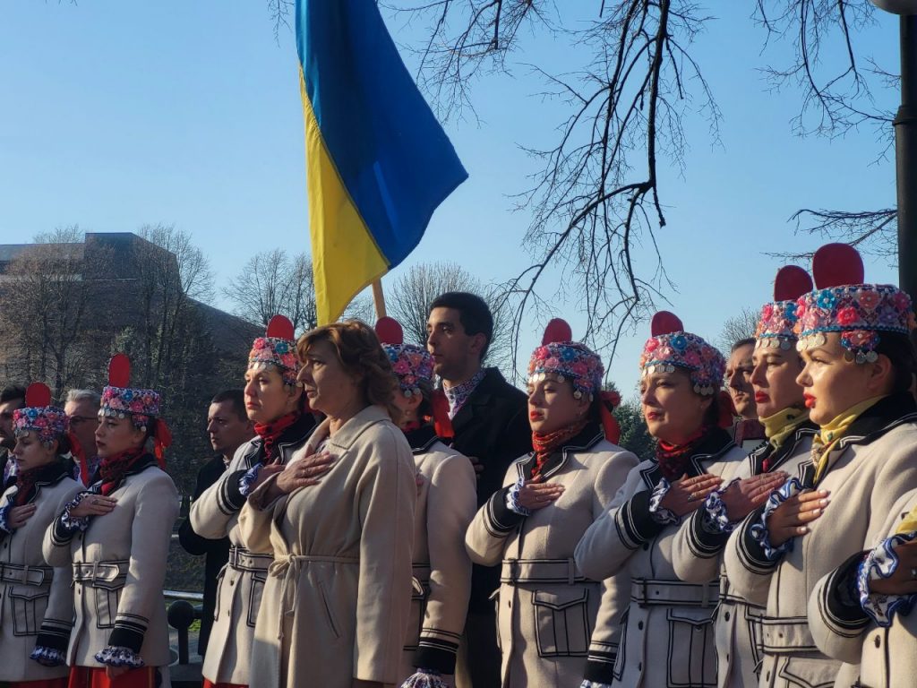 Присутні хвилиною мовчання вшанували пам’ять усіх, хто віддав життя за незалежність України. Спільно виконали Державний Гімн України.