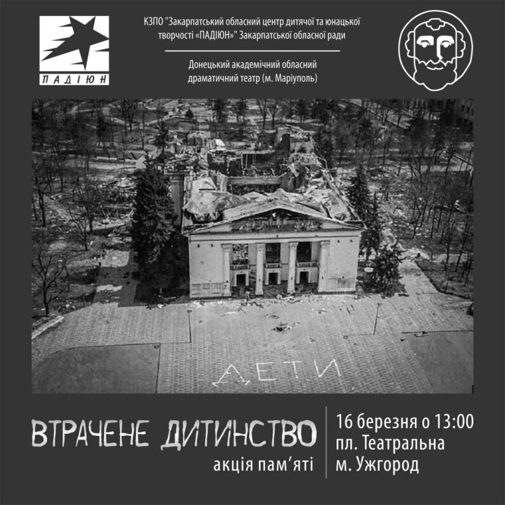 – о 13:00 — тиху акцію пам’яті «Втрачене дитинство» на площі Театральній;