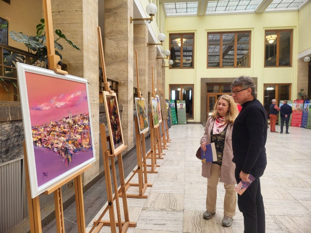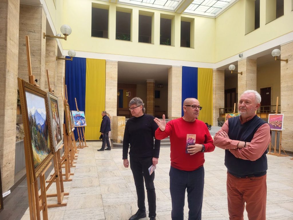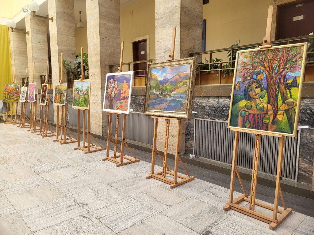 Мистецтво, що надихає і наближає перемогу. В атріумі головної адмінбудівлі Закарпаття розгорнули благодійну виставку-продаж робіт закарпатських художників. Половина коштів – на підтримку Збройних Сил України.