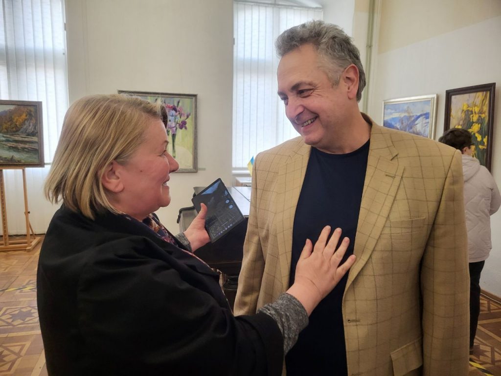 Принагідно вона вручила майстрові пензля Почесну грамоту за багаторічну сумлінну працю, особистий внесок у розвиток образотворчого мистецтва, вагомі творчі досягнення та з нагоди ювілею.
