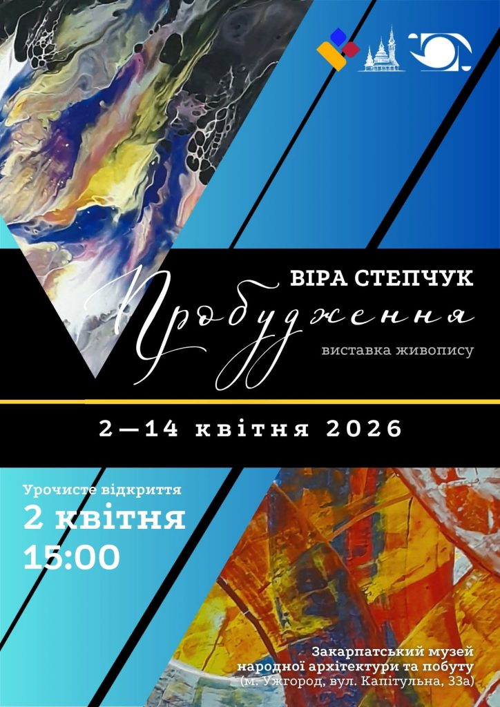 Також 2 квітня у просторі Закарпатського музею народної архітектури та побуту персональну виставку творів живопису презентує Віра Степчук – знана мисткиня, провідна художниця-декоратор Закарпатського академічного обласного музично-драматичного театру ім.братів Ю.-А. та Є.Шерегів. Добірка з назвою «Пробудження» є підсумком багаторічного творчого шляху авторки та присвячена її ювілеєві. Початок – о 15:00.