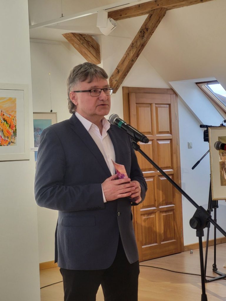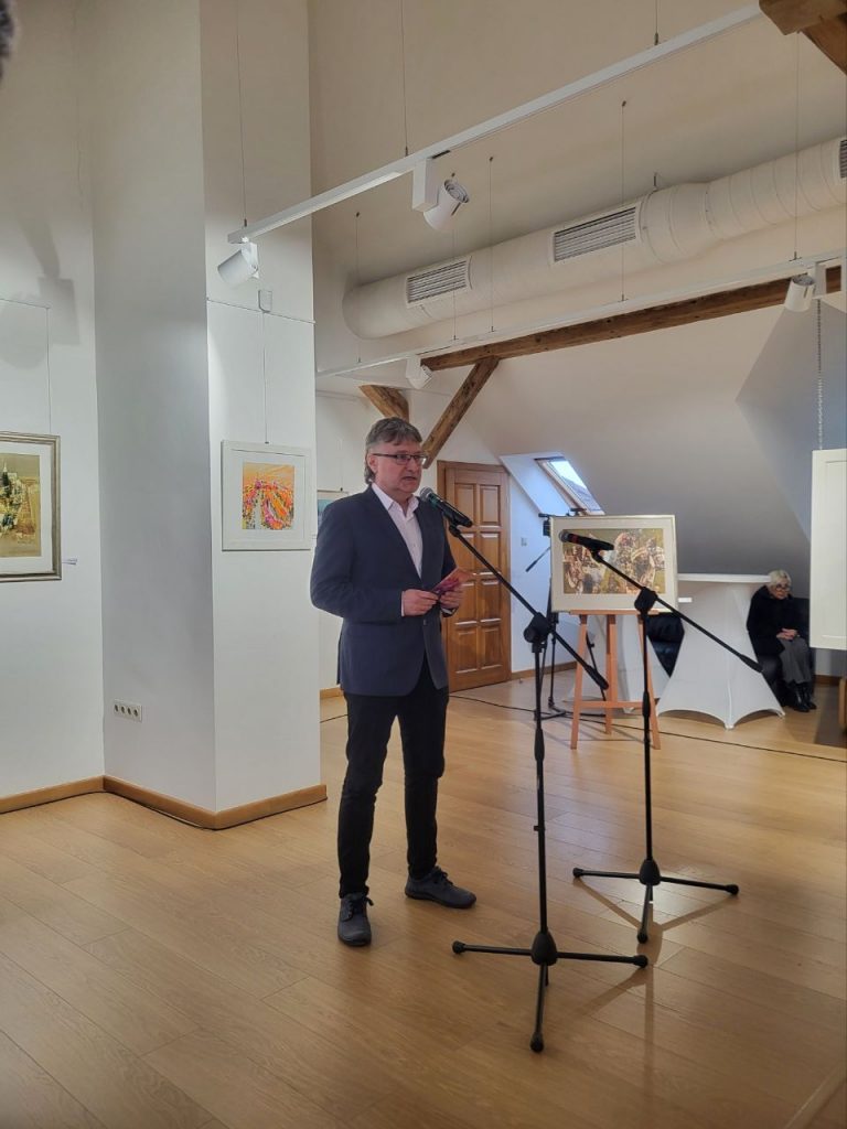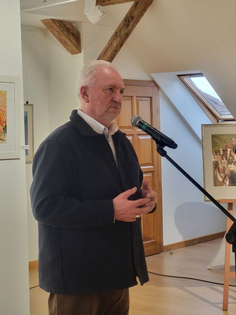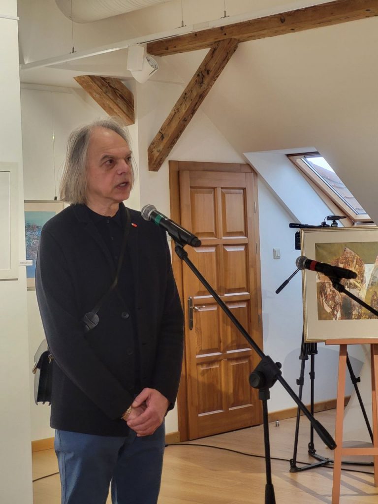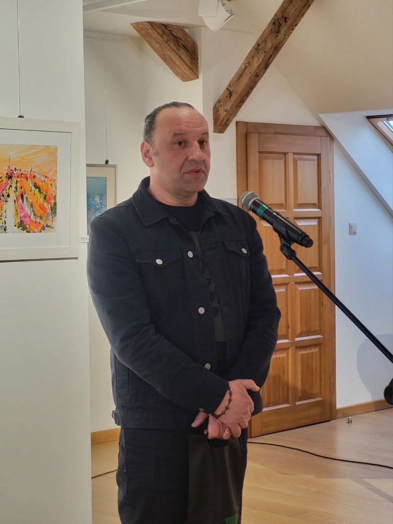 Привітав художника з відкриттям виставки в Угорському домі ім. М. Мункачі директор Йосип Торпоі. Він зазначив, що за понад п’ять років функціонування мистецького простору в ньому було презентовано близько 40 різнопланових експозицій, значна частина з яких знайомила з творчістю сучасних митців Закарпаття. Особлива приємність – відкривати нинішню виставку, адже її автор, як голова спілчанського осередку і художник, добре знайомий із мистецьким процесом у краї, неодноразово представляв у цьому залі доробок своїх колег. Цього разу мешканці та гості міста нарешті мають нагоду познайомитися і з його власною творчістю.