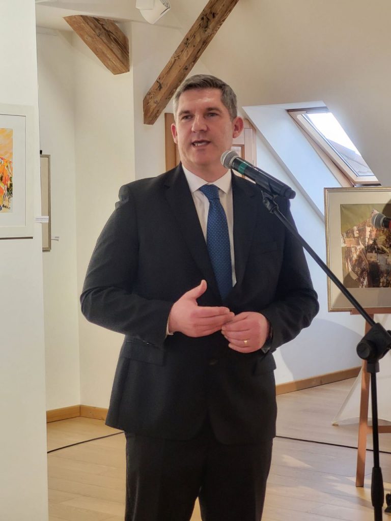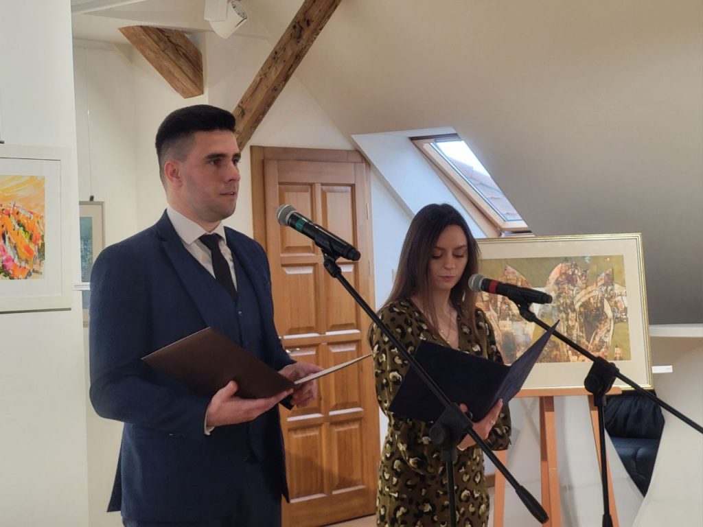 Консул Генерального консульства Угорщини в м. Ужгород Бенце Гомбор передав авторові вітання від керівництва дипломатичних представництв в Ужгороді та Берегові, подякував митцеві за співпрацю, відзначив вагомість його внеску у збереження, розвиток і популяризацію надбань художньої школи краю та привітав із відкриттям виставки в цьому просторі.