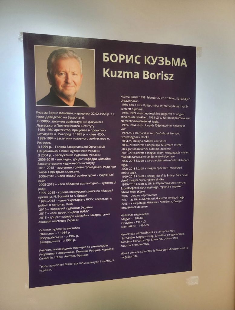 У Мукачеві відкрито персональну виставку робіт Бориса Кузьми – відомого живописця і графіка, народного художника України, голови Закарпатської організації Національної спілки художників України, доцента кафедри дизайну Закарпатської академії мистецтв, члена-кореспондента Національної академії мистецтв України, лауреата обласної премії ім. Й. Бокшая та А. Ерделі.